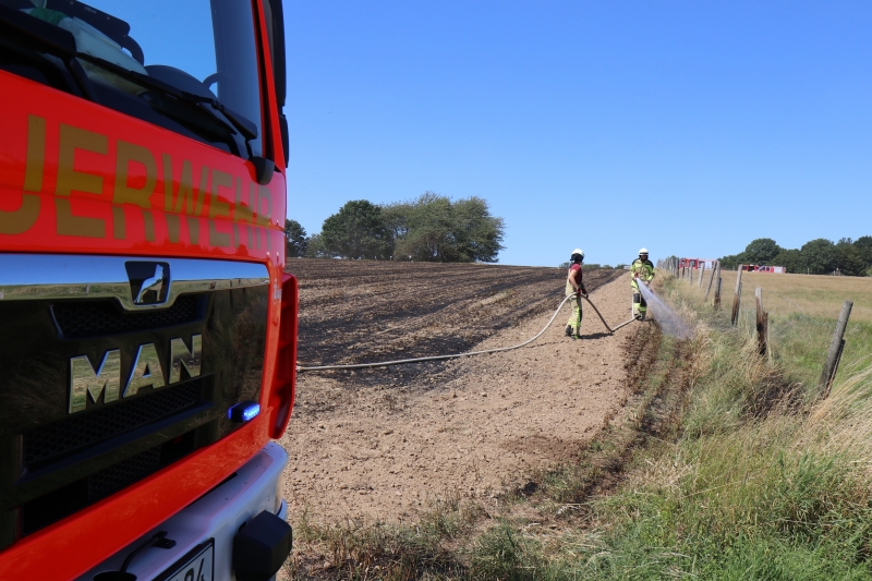 Mittwoch gegen 16:50 Uhr wurde die Feuerwehr zu einem Flächenbrand in Buchholz alarmiert. Da beim Notruf von einer größeren Fläche gesprochen wurde, wurden sofort die Einheiten Buchholz und Krautscheid sowie das Großtanklöschfahrzeug aus Neustadt entsandt. Als kurz darauf die ersten Einsatzkräfte am Sportplatz in Buchholz eintrafen, brannte eine Fläche von knapp 100 Quadratmetern Wiese an einem Waldstück. Mit zwei Strahlrohren wurde der Brand von beiden Seiten eingegrenzt und konnte schnell abgelöscht werden. Eine weitere Ausbreitung sowie größerer Schaden konnte verhindert werden. Im Einsatz waren unter der Leitung des stellvertretenden Wehrleiters Norbert Stockhausen 28 Kräfte der Feuerwehr sowie die Polizei.