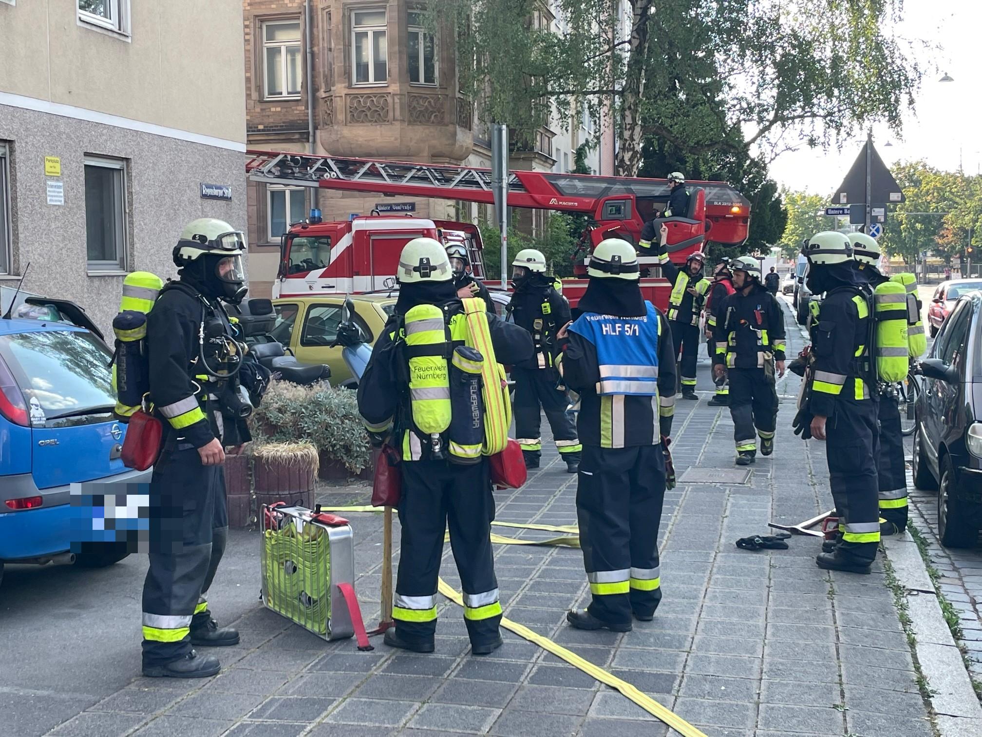 Gegen 18:00 Uhr erreichten die Integrierte Leitstelle Nürnberg zahlreiche Anrufe über einen Brand in der Regensburger Straße südlich des Hauptbahnhofs. Dabei war von mehreren vom Brand eingeschlossen Personen die Rede, darunter mehrere Kinder. Beim Eintreffen der ersten Einheiten der Berufsfeuerwehr machten sich zwei Personen auf einem Balkon im Brandrauch bemerkbar, die sofort über eine Drehleiter gerettet wurden. Der Treppenraum war zu diesem Zeitraum bereits nicht mehr begehbar, da die Tür der Brandwohnung komplett durchgebrannt war. Im Treppenraum stand dichter Brandrauch. Dort wurde eine weitere Person aufgefunden und ins Freie gebracht. Eine weitere Person machte sich auf der Rückseite des Gebäudes auf einem Balkon bemerkbar. Diese konnte jedoch zunächst in der rauchfreien Wohnung belassen werden. Aus der Brandwohnung schlugen derweil bereits offene Flammen durch ein zerstörtes Fenster. Das intensive Feuer in der Brandwohnung wurde sofort mit mehreren Trupps unter Atemschutz im Innenangriff bekämpft. In der Brandwohnung befand sich glücklicherweise keine Person mehr. Nachdem der Treppenraum gesichert werde konnte, wurden dann mit zahlreichen Atemschutztrupps alle Etagen des Gebäudes durchsucht und belüftet. Gleiches gilt für das Nachbarhaus, wo der Brandrauch über gekippte Fenster eingedrungen war. Im Rahmen der Durchsuchung konnte noch ein Hund gerettet und an seinen Besitzer übergeben werden.