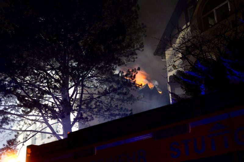Nachbarn meldeten Flammen und Rauch aus dem Dachstuhl eines Wohnhauses in der Bopserwaldstraße in Stuttgart-Süd. Mehrere Atemschutztrupps der Feuerwehr bekämpften den Brand mit insgesamt vier Löschrohren. Davon zwei Löschrohre im Innenangriff, eines im Außenangriff und ein weiteres über eine Drehleiter. Aufgrund der Hanglage des Gebäudes konnte nur eine Seite mittels einer Drehleiter erreicht werden, was die Löscharbeiten deutlich erschwerte. Zur besseren Koordinierung der Löschmaßnahmen kam auch eine Drohne der Feuerwehr zum Einsatz.