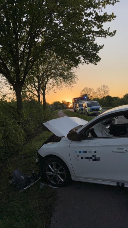 Vor Ort stellte sich heraus, dass ein PKW von der Fahrbahn abgekommen war, in einen Graben gerutscht und gegen einen Baum geprallt war. Die Einsatzkräfte sicherten die Unfallstelle ab und zogen das Fahrzeug mithilfe einer Seilwinde zurück auf die Fahrbahn. Auslaufende Betriebsmittel wurden abgestreut und aufgenommen.