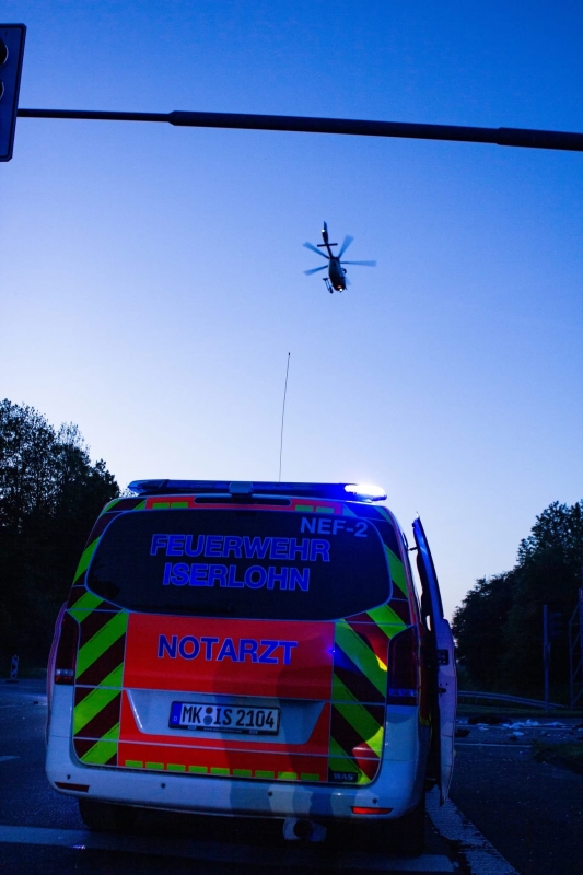 Daraufhin alarmierte diese ein Löschfahrzeug der Berufsfeuerwehr, einen Notarzt sowie einen Krankentransportwagen. Da zu diesem Zeitpunkt sämtliche Rettungswagen aus Iserlohn bereits im Einsatz waren, rückte zusätzlich ein Rettungswagen der Feuerwehr Hemer aus.