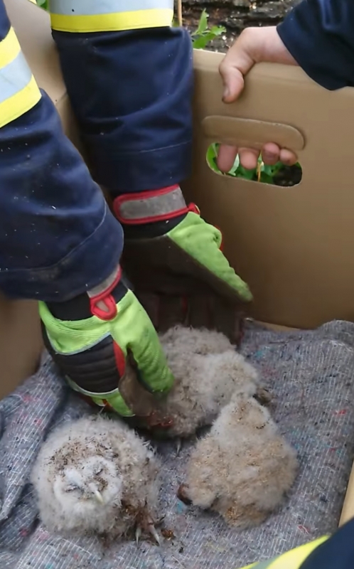 Auf der Bundesstraße 255 zwischen Obersayn und dem Hahner Stock wurde ein umgestürzter Baum von den Feuerwehren aus Rothenbach und Obersayn, sowie der Wehren aus Hahn am See/Elbingen und Meudt (VG Wallmerod), entfernt. Da sich in dem Baum ein Nest mit drei jungen Eulen befand, gestalteten sich die Arbeiten aufwendiger. Die Jungtiere wurden, nach Rücksprache mit Fachleuten der Bergischen Greifvogelhilfe, durch die Einsatzkräfte aus ihrer Baumhöhle gerettet und in Eigenregie in die Auffangstation nach Rösrath bei Köln verbracht. Nach Rettung der Eulen konnte der Baum beseitigt werden.