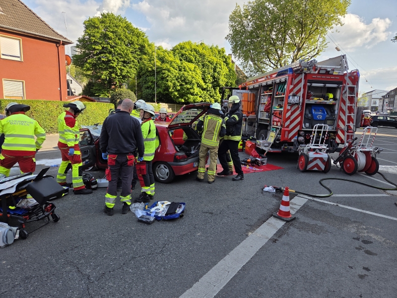 Um 17:30 Uhr ereignete sich auf der Castroper Str in Datteln ein schwerer Verkehrsunfall. Ein Fahrzeug aus der Innenstadt kommend fuhr aus unbekannter Ursache, frontal in ein entgegenkommendes Fahrzeug. Die 59-jährige Fahrerin wurde im Fahrzeug eingeklemmt und musste mit schweren technischen Geräten von der Feuerwehr aus dem Fahrzeug befreit werden. Aufgrund der lebensbedrohlichen Verletzungen wurde ein Rettungshubschrauber angefordert, der auf dem Gelände des Uniper Kraftwerkes landete. Zur Unfallaufnahme wurde durch die Polizei ein Unfallaufnahmeteam hinzugezogen. Die Verletzte wurde nach Gelsenkirchen in ein Krankenhaus der Maximalversorgung geflogen. Es bildeten sich lange Staus auf der Castroper Straße.