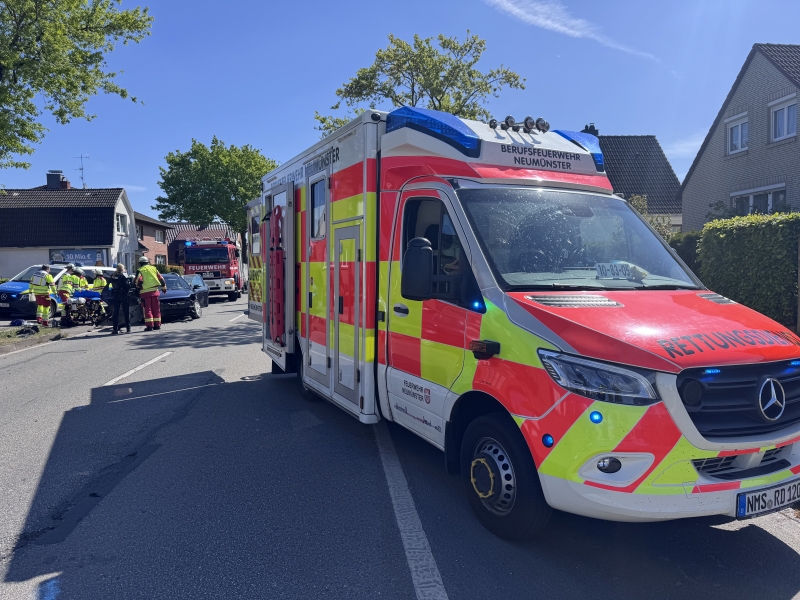 Am heutigen Mittwoch, den 14. Mai 2025 kam es um 10:52 Uhr zu einem Verkehrsunfall zwischen zwei Personenkraftwagen auf der Wasbeker Straße. Nach ersten Mitteilungen über den Notruf wurden dabei mehrere Personen verletzt. Die Integrierte Leitstelle Neumünster alarmierte umgehend den Rüstzug der Berufsfeuerwehr sowie vier Rettungswagen, ein Notarzteinsatzfahrzeug und den Leitenden Notarzt zur Einsatzstelle. Bei Eintreffen der ersten Einsatzkräfte waren keine Personen in den beiden beteiligten Fahrzeugen eingeklemmt oder eingeschlossen. Der Rettungsdienst übernahm die medizinische Versorgung aller vier betroffenen Personen, wobei die Feuerwehr unterstützend tätig war. Drei der Verletzten wurden zur weiteren Behandlung in ein Krankenhaus transportiert. Während der Einsatzmaßnahmen musste die Wasbeker Straße in beiden Fahrtrichtungen voll gesperrt werden. Insgesamt waren rund 25 Einsatzkräfte der Feuerwehr und des Rettungsdienstes im Einsatz. Nach Abschluss aller Maßnahmen wurde die Einsatzstelle der Polizei übergeben.