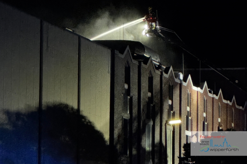 Mitarbeiter meldeten einen Brand in einer Produktionshalle eines Industriebetriebes. Die Kreisleitstelle entsandte daraufhin sofort ein Großaufgebot an Einsatzkräften. Bereits auf der Anfahrt war eine starke Rauchentwicklung sowie ein großer Flammenschlag feststellbar. Das Einsatzstichwort wurde daraufhin auf "Brand 4 Gebäude" erhöht und somit nahezu alle Einheiten der Feuerwehr Wipperfürth in den Einsatz alarmiert. Die Löschgruppen Klaswipper und Thier stellten den Grundschutz im Stadtgebiet sicher. Unterstützt wurden die wipperfürther Einsatzkräfte im Verlauf durch die benachbarte Feuerwehr Hückeswagen mit der Löschgruppe Holte und der Drehleiter sowie durch den oberbergischen Kreis, der den Messzug, die Atemschutzreserve, den ELW2 und Kräfte des Rettungsdienstes entsendete.