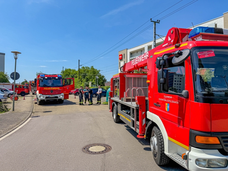 Ein ausgedehnter Küchenbrand hat eine Wohnung in einem Hochhaus im Ortsteil Leopoldshafen sehr stark beschädigt. Der 22-jährige Bewohner konnte sich selbständig aus der Brandwohnung ins Freie retten. Er wurde vor Ort vom Notarzt wegen einer RauchgasIntoxikation ambulant behandelt und zu weiteren Untersuchungen in eine Klinik eingeliefert. Als die ersten Kräfte der örtlichen Freiwilligen Feuerwehr an der Einsatzstelle eintrafen, drang starker Rauch aus einem Fenster der im Erdgeschoss gelegenen Wohnung. "Wir hatten durch den dichten Rauch wenig Sicht, als wir zum Löschen in die Wohnung vorgegangen sind", berichtete der Trupp aus dem ersten Fahrzeug. Die Feuerwehr konnte das Feuer rasch löschen und ein weiteres Ausbreiten verhindern. Während der Löscharbeiten wurden die Drehleiter zur Sicherstellung der Rettungswege am Gebäude aufgestellt. Die Einrichtung der vom Brand betroffenen Wohnung ist durch das Feuer und den Rauch stark beschädigt. Die Wohnung ist deshalb nicht mehr bewohnbar und die Gemeindeverwaltung Eggenstein-Leopoldshafen kümmerte sich um die Unterbringung der betroffenen Personen. Die Feuerwehr war mit 61 Einsatzkräften unter der Leitung von Frank Schnürer im Einsatz. Unterstützt wurden die örtlichen Kräfte durch die Feuerwehren aus den Gemeinden Linkenheim-Hochstetten, Graben-Neudorf, Dettenheim und von der Werkfeuerwehr des KIT. Im Einsatz war auch die gemeinsame Führungsgruppe der Feuerwehren in der Hardt. Der stellvertretenden Kreisbrandmeister Dominik Wolf war ebenso vor Ort an der Einsatzstelle wie der stellvertretende Leiter des Ordnungsamtes der Gemeinde, Jonas Hartl. Drei Rettungswagen und ein Notarzteinsatzfahrzeug waren vom Rettungsdienst an der Einsatzstelle. Die DRK-Bereitschaften aus Eggenstein-Leopoldshafen und Stutensee-Blankenloch versorgten die Einsatzkräfte mit Getränken. Als organisatorischer Leiter des Rettungsdienstes war Dennis Schlindwein vom DRK im Einsatz. Mit drei Streifenwagen waren sechs Beamtinnen und Beamte vom Polizeireviert Karlsruhe-Waldstadt vor Ort. Zur Brandursache und dem gesamten Schadensausmaß können derzeit noch keine Angaben gemacht werden.