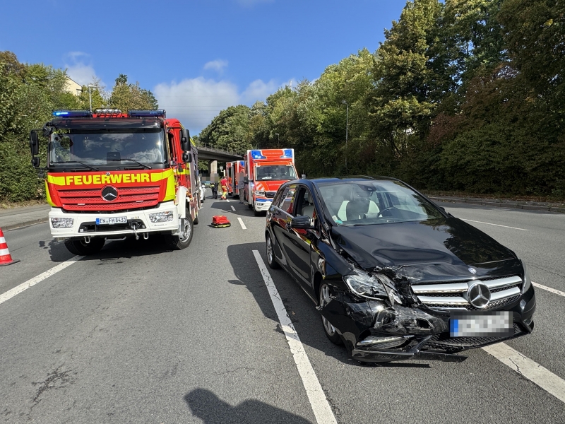 Vor der Ampel in Fahrtrichtung Hagen kam es zu einem Auffahrunfall zwischen zwei Fahrzeugen. Dabei wurden insgesamt drei Personen verletzt, eine davon mittelschwer.