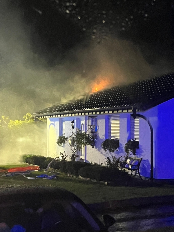 Aus bisher unbekannter Ursache war ein Feuer in dem ungenutzten und aus dem Wohnbereich nicht zugänglichen Raum unter dem Dach ein Feuer ausgebrochen.