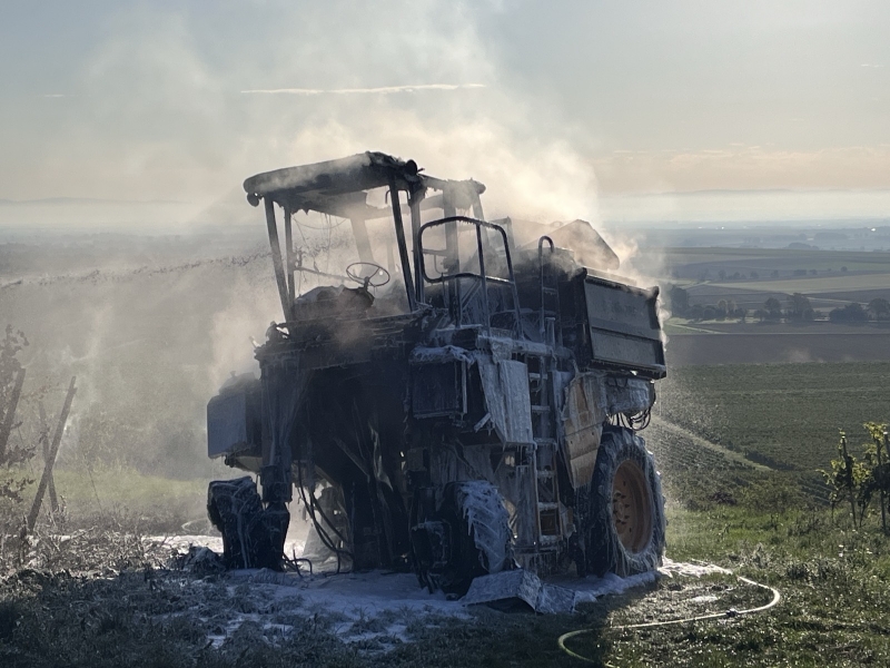 Am Samstagmorgen, den 20.09.2025, brach gegen 07:52 Uhr zwischen den Weinreben bei Kindenheim aufgrund eines technischen Defekts ein Brand an einem Vollernter aus. Durch die Feuerwehr konnte der Brand gelöscht werden. Verletzt wurde glücklicherweise niemand. Es entstand Sachschaden in Höhe von etwa 30.000