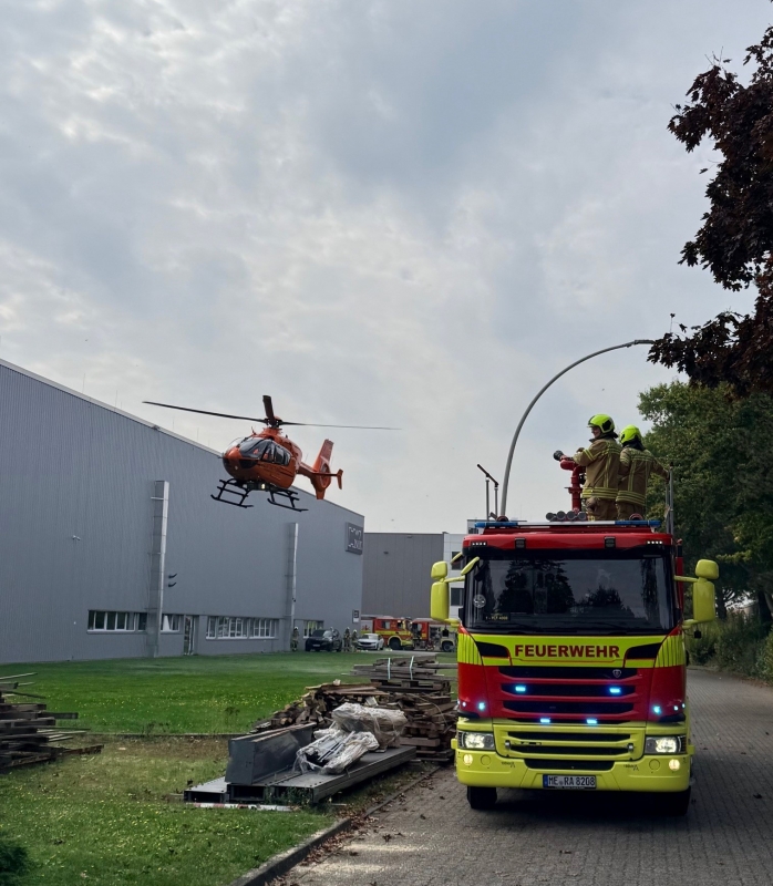 Am heutigen Montagvormittag gegen 10:55 Uhr wurden die Feuerwehr Ratingen und der Rettungsdienst zu einem schweren Arbeitsunfall in einer Industriehalle an der Robert-Zapp-Str. im Stadtteil Tiefenbroich alarmiert. Aus bislang ungeklärter Ursache wurde ein Mitarbeiter einer dort ansässigen Firma von einer Palette mit Stahlblechen eingeklemmt und dabei schwer verletzt. Dank der schnellen notärztlichen Versorgung sowie des umgehenden Einsatzes des Rettungsdienstes konnte der Verletzte während der technischen Rettung durch die Feuerwehr medizinisch stabilisiert werden. Für die Befreiung der eingeklemmten Person setzte die Feuerwehr verschiedene technische Rettungsmethoden ein. Neben hydraulischem und pneumatischem Rettungsgerät kam auch ein in der Halle befindlicher Lastenzug zum Einsatz. Nach der erfolgreichen Rettung und Stabilisierung wurde der Patient in eine geeignete Fachklinik transportiert. Mitarbeitende der betroffenen Firma wurden durch ein speziell geschultes Team der Notfallseelsorge betreut. Im Einsatz befanden sich neben der Berufsfeuerwehr Ratingen mit Einheiten beider Standorte und dem Führungsdienst auch die Freiwillige Feuerwehr Tiefenbroich sowie zusätzliche Kräfte vom Standort Mitte, der Rettungsdienst der Städte Ratingen und Heiligenhaus, der Notarzt des Kreises Mettmann vom Standort Ratingen, ein Rettungshubschrauber aus Duisburg, die Polizei des Kreises Mettmann sowie ein Team der Notfallseelsorge des Kreises Mettmann. Zur Ursache des Unfalls kann die Feuerwehr keine Angaben machen. Die Polizei hat die Ermittlungen aufgenommen.
