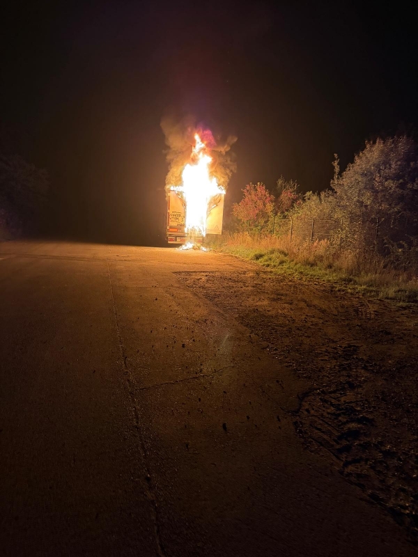 Beim Eintreffen der ersten Einsatzkräfte schlugen Flammen aus dem Heck des Aufliegers. Unverzüglich wurde ein Löschangriff unter Atemschutz eingeleitet. Dabei kam im Verlauf des Einsatzes auch Schaummittel zum Einsatz. Aufgrund der schwierigen Wasserversorgung auf dem Parkplatz an der Landstraße beorderte der Einsatzleiter in der Frühphase des Einsatzes ein weiteres Tanklöschfahrzeug zur Einsatzstelle.