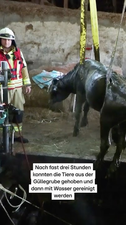 Erste Meldungen gingen zunächst von vier betroffenen Tieren aus. Vor Ort stellte der Einsatzleiter jedoch fest, dass insgesamt sechs Jungrinder in der Grube standen. Um den Tieren helfen zu können, wurden die eingestürzten Betonspaltenböden entfernt und die Gülle durch den Landwirt schrittweise abgepumpt. Ohne diese Maßnahme wäre eine Rettung kaum möglich gewesen, da die Tiere bis zum Hals in der Gülle standen.
