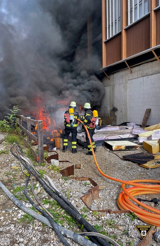 Am Mittwochnachmittag ist die Feuerwehr München zu einer starken Rauchentwicklung auf einer Baustelle im Bereich der Torquato-Tasso-Straße alarmiert worden. Bereits auf der Anfahrt war eine dichte, schwarze Rauchsäule weithin sichtbar.