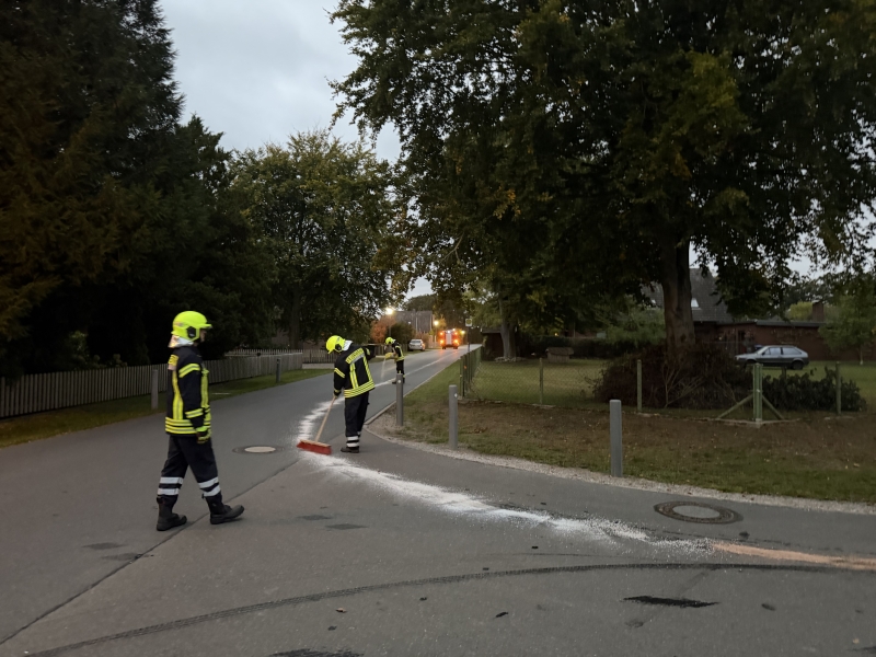 Am Abend des 09.10. 2025 wurde die Ortsfeuerwehr Sandlingen um 18:42 Uhr zu einer Ölspur im Fasanenweg in Neu-Schepelse alarmiert.