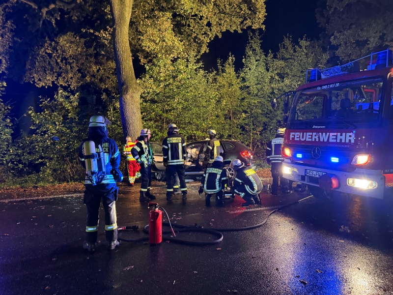 Am Montagmorgen gegen 00:15 Uhr wurden die Löschzüge Altschermbeck, Schermbeck und Gahlen mit dem Stichwort "H3 -Person eingeklemmt Y" an die Einsatzstelle "Freudenbergstraße (B58)" alarmiert. An der Einsatzstelle war es zu einem Verkehrsunfall mit einem beteiligten PKW gekommen. Die betroffene Person wurde aus dem Fahrzeug befreit und an den Rettungsdienst übergeben. Auslaufende Betriebsmittel wurden abgestreut und das Fahrzeug spannungsfrei geschaltet. Mit der Übergabe der Einsatzstelle an die Polizei endete der Einsatz für die Feuerwehr gegen 01:30 Uhr.