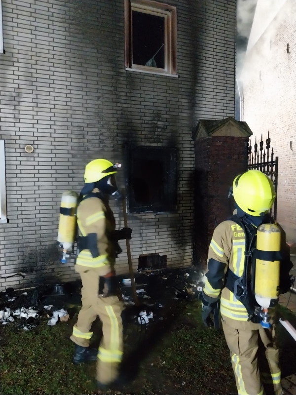 Die Feuerwehr Gangelt wurde heute Nacht um 2:04 Uhr zu einem Wohnhausbrand mit Menschenleben in Gefahr am Markt in Gangelt alarmiert. Aus bislang ungeklärter Ursache war gegen 2 Uhr Nachts auf dem Friedhof in Gangelt eine Mülltonne in Brand geraten, die unmittelbar an einem Wohn- und Geschäftshaus stand. Noch während sich die zunächst alarmierte Löscheinheit Gangelt auf der Anfahrt zur Einsatzstelle befand, brachen die Flammen durch ein Fenster im Erdgeschoss und dichter Brandrauch drang in den Flur ein sowie in die Wohnungen des Gebäudes ein. Während die Bewohner der Wohnung im ersten Obergeschoss sich und ihren Hund retten konnte, wurde die Bewohnerin im zweiten Obergeschoss von dem dichten Brandrauch eingeschlossen. Daraufhin erhöhte die Leitstelle des Kreises Heinsberg das Alarmstichwort und es wurden weitere Einheiten der Feuerwehr Gangelt sowie mehrere Rettungsmittel des Rettungsdienstes im Kreis Heinsberg zur Einsatzstelle am Markt in Gangelt beordert. Unmittelbar bei Eintreffen schlugen die Einsatzkräfte die lodernden Flammen nieder und begaben sich zur Menschenrettung in das Gebäude. Mit Hilfe der Drehleiter wurde die Frau aus dem zweiten Obergeschoss gerettet und dem bereitstehenden Rettungsdienst übergeben. Glücklicherweise blieb die ältere Dame unverletzt, die beiden Wohnungen sind derzeit jedoch nicht bewohnbar. Das Ordnungsamt der Gemeinde Gangelt verbrachte die Bewohner für den Rest der Nacht in eine Notunterkunft. Die Einsatzkräfte der Feuerwehr führten anschließend umfangreiche Nachlöscharbeiten sowie Sicherungen am Gebäude durch. Insgesamt waren rund 40 Einsatzkräfte der Löscheinheiten Gangelt, Stahe-Niederbusch, Breberen und Hastenrath sowie der Einsatzleitwagen unter der Leitung von Gemeindebrandinspektor Heiko Dreßen etwa zwei Stunden lang im Einsatz. Die Kriminalpolizei hat die Ermittlungen zur Brandursache noch in der Nacht aufgenommen.