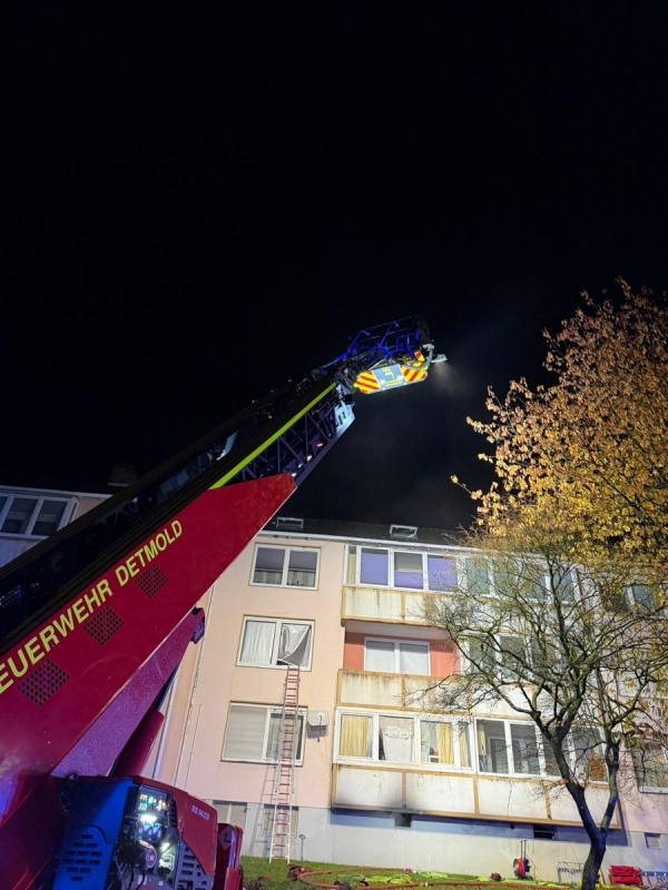 Am Donnerstagabend um 21:06 Uhr wurde die Feuerwehr Detmold zu einem gemeldeten Zimmerbrand in den Ortsteil Herberhausen alarmiert. Bereits auf der Anfahrt erhielten die Einsatzkräfte Hinweise auf mehrere Personen die sich noch im Gebäude aufhalten sollten.