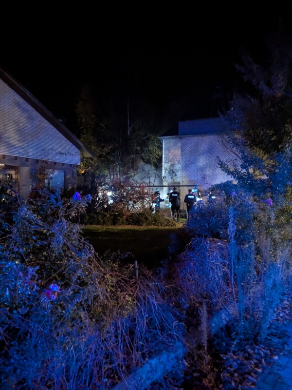 Zunächst brannte Unrat im Terrassenbereich. Das Feuer hatte auf den angrenzenden Zaun übergegriffen und bereits die Dachgauben des links angrenzenden Einfamilienhauses und ein Fenster des rechts angrenzenden Hauses beschädigt, wodurch Rauch in das Treppenhaus eingedrungen war. Die Bewohner konnten das Gebäude aber verlassen und wurden durch den Rettungsdienst gesichtet.
