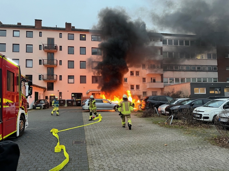 Um 9:25 Uhr ging in der Regionalleitstelle in Bremerhaven eine Meldung über mehrere brennende PKW in der Innenstadt ein. Umgehend rückten ein Führungsfahrzeug und zwei Hilfeleistungslöschfahrzeuge zum Einsatzort aus. Beim Eintreffen der Einsatzkräfte standen vier Fahrzeuge in Vollbrand. Trotz des zeitnahen Eintreffens der Löschmannschaft sowie der schnellen Brandbekämpfung sind die Fahrzeuge als Totalverlust abzuschreiben. Menschen kamen glücklicherweise nicht zu Schaden. Die Feuerwehr war mit 12 Beamten für eine Stunde vor Ort. Die Brandursachenermittlung wird von der Polizei übernommen.