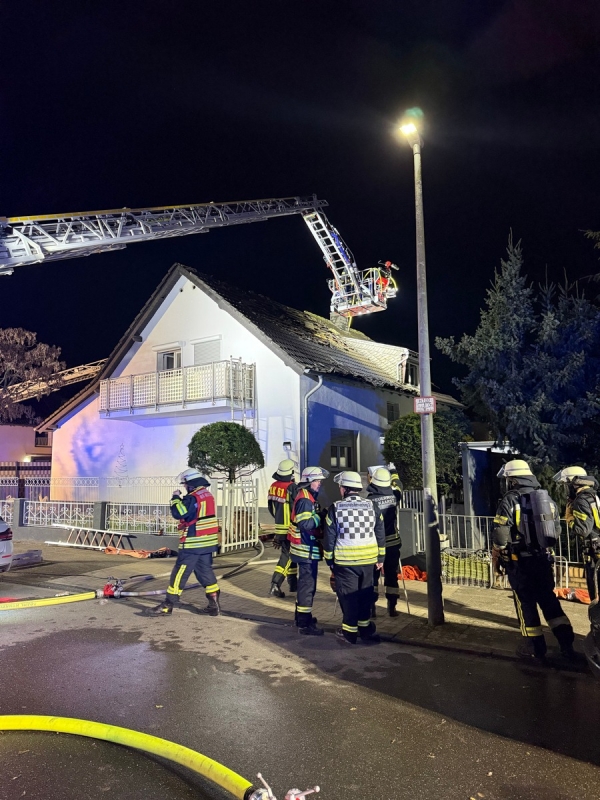 Anschließend wurde das Feuer, welches bereits auf Teile des Dachstuhls übergegriffen hatte im Außenangriff über zwei Drehleitern und einem Löschrohr, sowie im Innenangriff durch mehrere Trupps unter Atemschutz bekämpft.