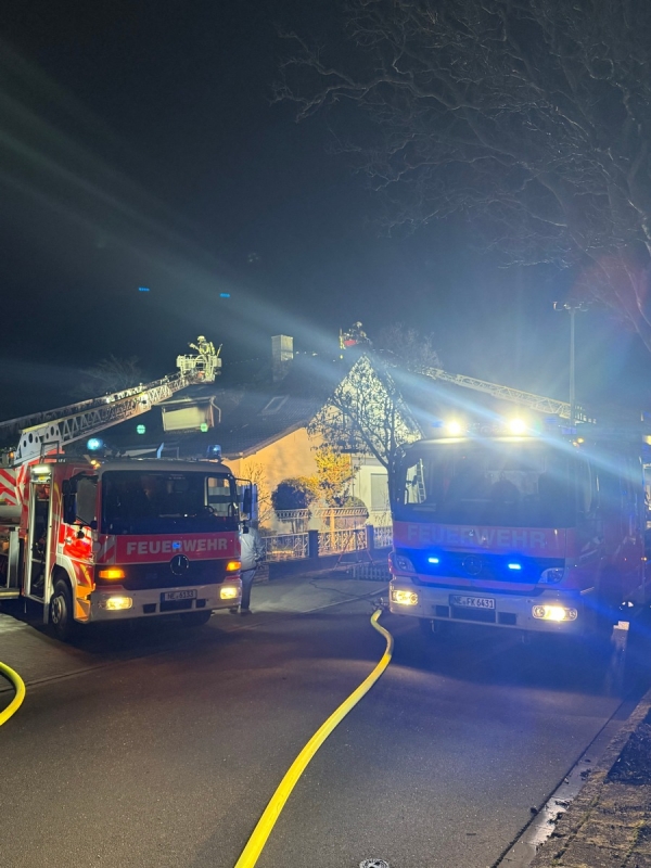Durch den parallelen Einsatz der beiden Drehleitern der Feuerwehr Kaarst konnte das Feuer schnell bekämpft und ein ausbreiten auf den gesamten Dachstuhl verhindert werden.