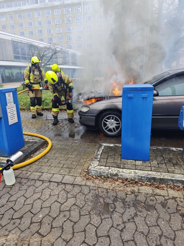 Am heutigen Dienstag wurde die Feuerwehr Detmold um 11:04 Uhr zu einem brennenden Personenkraftwagen in die Leopoldstraße alarmiert.