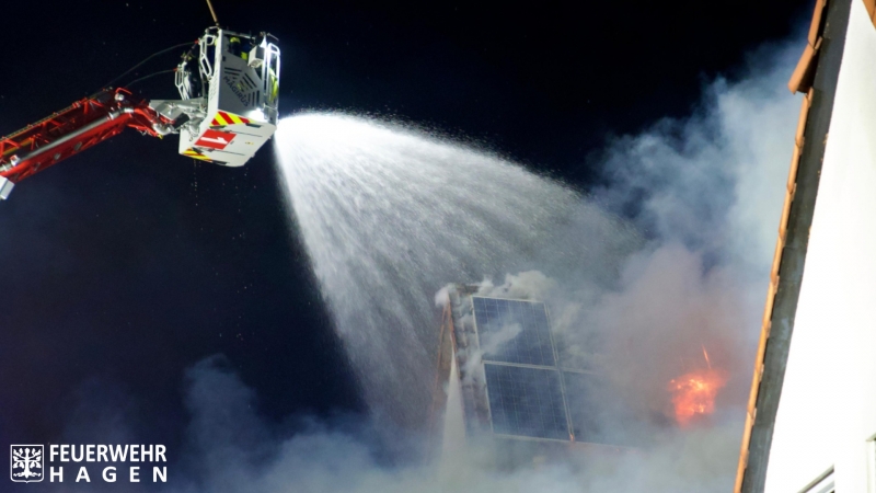 Hohes Einsatzaufkommen für Feuerwehr und Rettungsdienst zum Jahreswechsel, darunter auch ein Großbrand und Verletzungen durch Feuerwerkskörper. Im Tagesverlauf gab es für den Rettungsdienst mit über vierzig Einsätzen bereits ein erhöhtes Einsatzaufkommen. Mit dem Jahreswechsel mussten auch die Einsatzkräfte der Berufsfeuerwehr, unterstützt von Einheiten der Freiwilligen Feuerwehr, zu mehreren Einsätzen ausrücken. So brannten mehrere Kraftfahrzeuge an verschiedenen Stellen im Stadtgebiet, weiter wurden mehrere Kleinbrände gemeldet, unter anderem brannten Tannenbäume an einer Schule auf Emst sowie mehrere Mülleimer und Böllerreste an verschiedenen Einsatzstellen. In der Straße zur Höhe musste die Feuerwehr einen ausgedehnten Dachstuhlbrand an mehreren zusammenhängenden Gebäuden bekämpfen, dort waren zahlreiche Trupps unter Atemschutz und insgesamt neun Strahlrohre im Einsatz. Um die Wasserversorgung sicherzustellen wurde Löschwasser über Schlauchleitungen von der Selbeckerstr. herangeführt, verletzt wurde zum Glück niemand. Leider kam es auch in diesem Jahr wieder zu Verletzungen durch Feuerwerkskörper, darunter waren Handverletzungen, Gesichtsverletzungen und auch Knalltraumata. Positiv ist anzumerken, dass keine Angriffe auf Rettungskräfte gemeldet wurden. Fazit: Für alle Einsatzkräfte eine kräftezehrende Schicht.