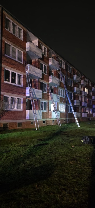 Um 00:00 Uhr kam es zu einem Feuer in einem Wohngebäude in Kaltenkirchen. Durch die starke Verrauchung im Treppenhaus mussten sechs Personen durch die Feuerwehr über tragbare Leitern gerettet und an den Rettungsdienst übergeben werden. Insgesamt waren 15 Personen betroffen, fünf Patienten wurden in umliegende Krankenhäuser zur weiteren Behandlung transportiert. Im Einsatz waren neben der Feuerwehr Kaltenkirchen, auch die Feuerwehr Alveslohe, sowie an Vielzahl an Rettungsmitteln.