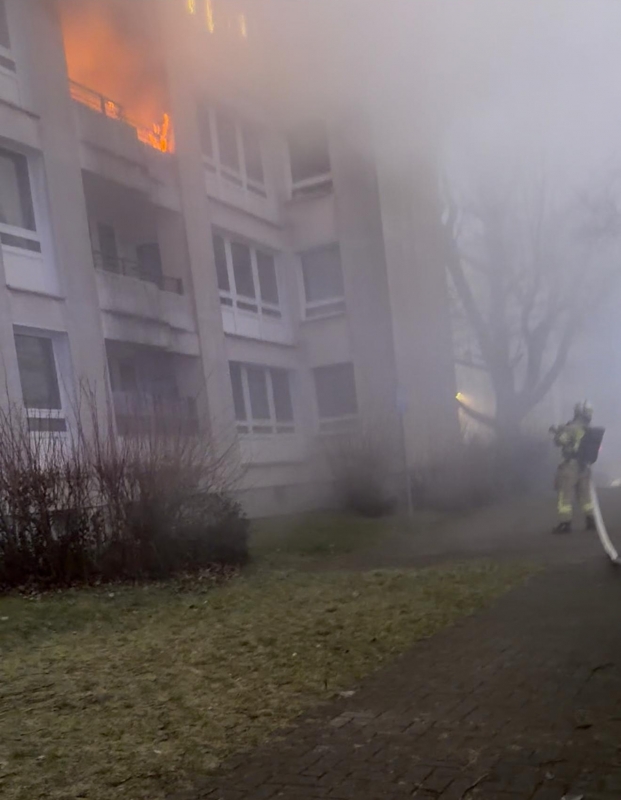 Der Silvestertag begann für die Feuerwehr Remscheid mit einem Balkonbrand in der Otto-Hahn-Straße. Eine Fußgängerin hatte gegen 08:05 Uhr den Brand bemerkt und umgehend den Notruf gewählt. Als die ersten Feuerwehrkräfte eintrafen, stand der Balkon bereits im Vollbrand. Die Scheiben zu der dahinterliegenden Wohnung waren geborsten, so dass auch diese bereits verraucht war. Die Feuerwehr begann sofort damit, dass Feuer auf dem Balkon und teilweise bereits in der Wohnung von außen sowie von innen zu löschen. Parallel dazu wurden zwei Drehleitern in Stellung gebracht um eine weitere Brandausbreitung zu verhindern und gegebenenfalls Personen aus dem Gebäude zu retten. Die Bewohner der betroffenen Wohnung konnten sich zum Glück bereits vor dem Eintreffen der Feuerwehr in Sicherheit bringen und wurden durch den Rettungsdienst betreut. Da die schwangere Mutter der vierköpfigen Familie geringe Mengen an Brandrauch eingeatmet hatte, wurde sie zur Abklärung ins Krankenhaus gebracht. Die Wohnung ist nach dem Brandereignis nicht mehr bewohnbar, so dass die ganze Familie die Silvesternacht bei Verwandten verbringen muss. Die Familienkatze, die zwischenzeitig von der Feuerwehr aus der Wohnung gerettet wurde, wird vorübergehend im Tierheim betreut. Aufgrund der starken Rauchentwicklung wurden auch alle anderen Wohnungen des Mehrfamilienhauses kontrolliert. Verletzt wurde hier zum Glück niemand.