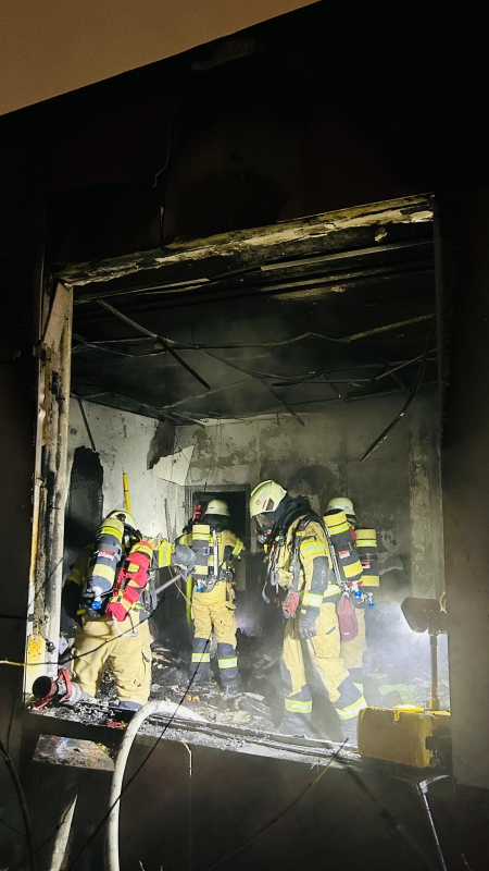 Da die Flammen an der Fassade emporgeschlagen waren, wurde das Gebäude von außen auf eine mögliche Ausbreitung des Feuers bis unter das Dach kontrolliert. Glücklicherweise war dies nicht der Fall.