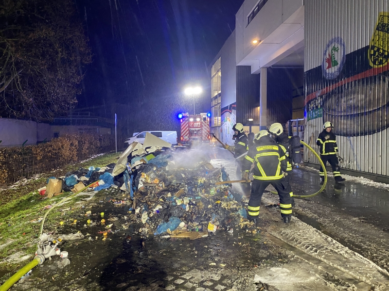 Heute Nacht wurde die Feuerwehr Iserlohn um 0:27 Uhr zu einer brennenden Müllpresse an der Eissporthalle am Seilersee gerufen. Die Einsatzkräfte leiteten eine Brandbekämpfung mit einem C-Rohr ein und brachten den Brand unter Kontrolle. Um das Feuer im Innern der Müllpresse letztendlich ablöschen zu können, forderten die Kräfte ein Wechselladerfahrzeug (WLF) nach. Mit dem WLF konnte die Presse versetzt, geöffnet und entleert werden. Der Abfall wurde anschließend auseinandergezogen und abgelöscht. Dabei wurde auch Schaummittel eingesetzt. Im Einsatz befand sich die Berufsfeuerwehr mit dem Löschzug. Die ebenfalls alarmierte Löschgruppe Stadtmitte brauchte nicht mehr ausrücken und blieb im Gerätehaus in Bereitschaft. Gegen 1:30 Uhr konnte die Feuerwehr den Einsatz beenden.