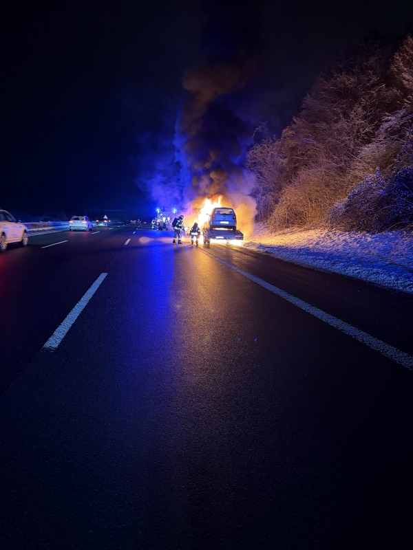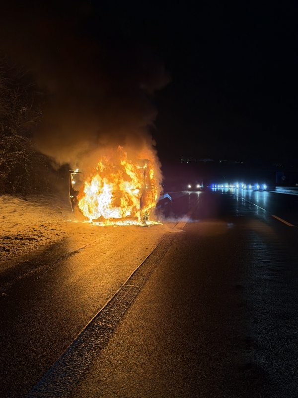 Der Fahrer des Transporters hatte während der Fahrt eine Rauchentwicklung bemerkt und das Fahrzeug umgehend auf dem Standstreifen abgestellt. Kurz darauf breitete sich der Brand auf den Autotransporter aus. Ein Übergreifen der Flammen auf den geladenen Pkw konnte durch das schnelle Eingreifen der Feuerwehr verhindert werden.