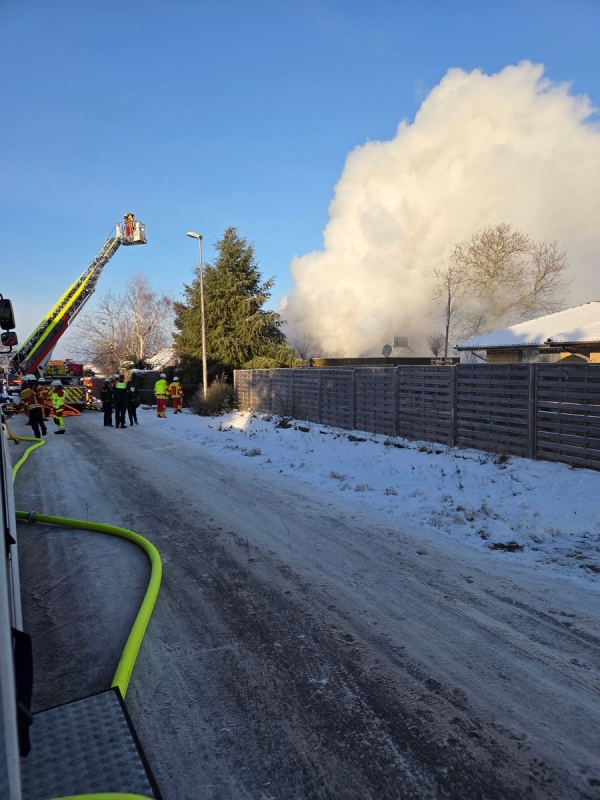 Die Feuerwehr Minden wurde am heutigen Sonntag Vormittag um ca. 10.00 Uhr zunächst zu einem Wohnungsbrand alarmiert. Einsatzort war der Ziegeleiweg. Bei Eintreffen der Feuerwehr stand das Erdgeschoss eines Einfamilienhauses in Vollbrand. Eine Person wurde als vermisst gemeldet. Sofort wurde ein umfassender Löschangriff mit mehreren Trupps sowohl von Außen als auch von Innen eingeleitet. Da sich das Feuer in den Dachstuhl ausgebreitet hatte, kam unterstützend die Drehleiter zum Einsatz. Nach ca. vier Stunden war das Feuer unter Kontrolle. Die Einheit Hahlen übernahm eine Brandwache vor Ort. Im Rahmen der Maßnahmen wurde eine Person im Gebäude aufgefunden. Der Notarzt konnte nur noch den Tod feststellen. Eine Einsatzkraft musste aufgrund von Kreislaufproblemen durch den Rettungsdienst untersucht werden, musste aber nicht ins Krankenhaus transportiert werden. Das Gebäude hat durch das Feuer erheblichen Schaden genommen. Die Einsatzstelle wurde durch die Polizei beschlagnahmt. Zudem hat sie die Ermittlungen zur Brandursache aufgenommen. Im Einsatz waren die Berufsfeuerwehr, sowie die freiwilligen Einheiten Bölhorst/Häverstädt, Dützen, Haddenhausen, Stadtmitte und Hahlen sowie die Sondergruppen Versorgung, Logistik, Atemschutz und Einsatzleitwagen. Hinzu kommen das Team psychosoziale Unterstützung sowie die Notfallseelsorge. Der Rettungsdienst der Feuerwehr Minden war mit einem Notarzteinsatzfahrzeug und zwei Rettungswagen vor Ort. Die städtischen Betriebe Minden unterstützten mit einem Streufahrzeug an der Einsatzstelle.