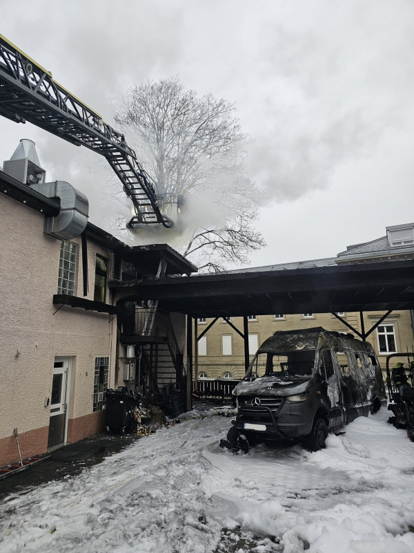 Ein großer Feuerschein war in der Olgastraße in Nagold sichtbar als am Sonntagmorgen gegen 7:00 Uhr die Feuerwehr alarmiert wurde und kurz danach an der Einsatzstelle eintraf. Bewohner und Anwohner alarmierten die Feuerwehr, da zwischen einem Wohnhaus und einer Gasstätte ein Brand in einem Carportbereich ausgebrochen war. Beim Eintreffen der ersten Einsatzkräfte wurde dem Einsatzleiter und stellv. Kommandant der Feuerwehr Nagold Philipp Katz mitgeteilt, dass sich alle Personen aus den beiden Häusern unverletzt in Sicherheit bringen konnten. Somit wurde umgehend mit der Brandbekämpfung begonnen.