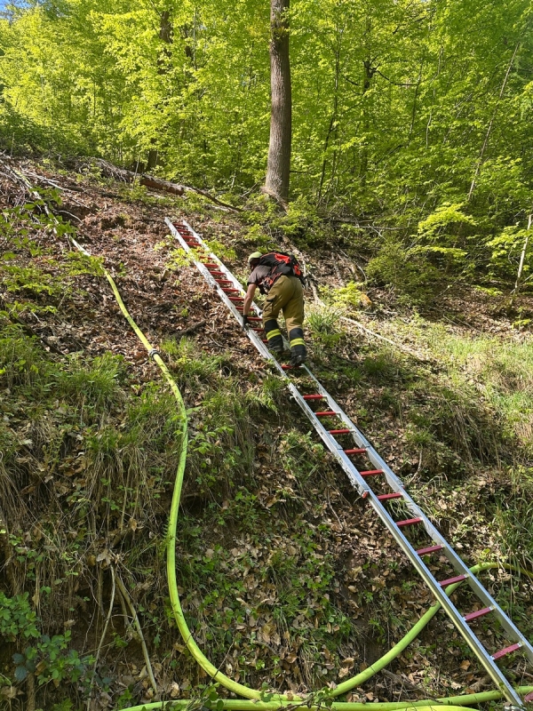 - Steile Hanglage erschwert die Löscharbeiten
