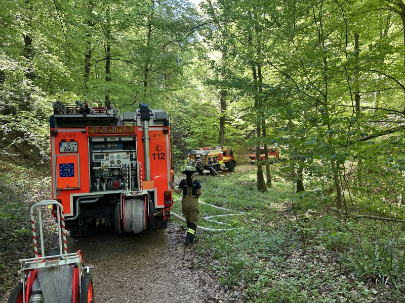 Am Samstagnachmittag hörte eine aufmerksame Spaziergängerin knisternde Geräusche und eine leichte Rauchentwicklung und wählte den Notruf. Bei Eintreffen der Feuerwehr im Gewann Fuchsrain in Stuttgart-Rohracker schlugen die Flammen an einem steilen Hang bereits bis zu zwei Meter in die Höhe und der der Brand breitete sich schnell aus.