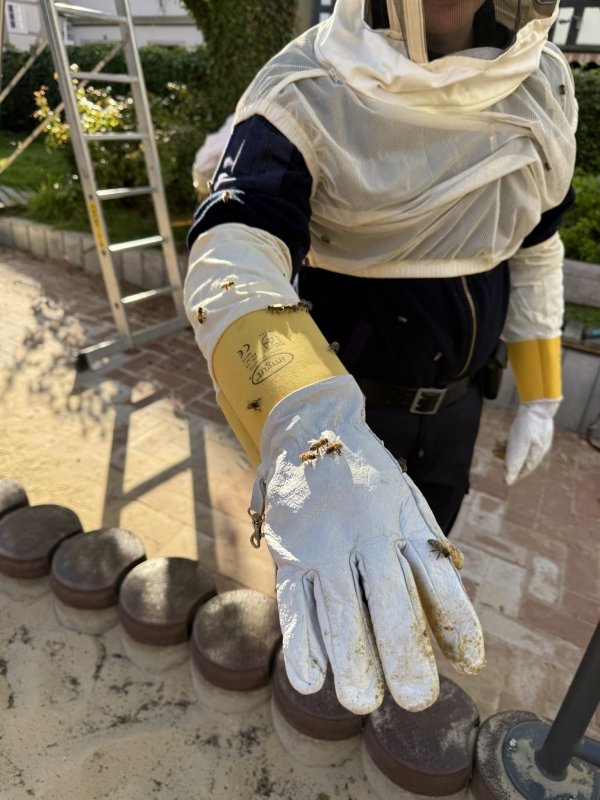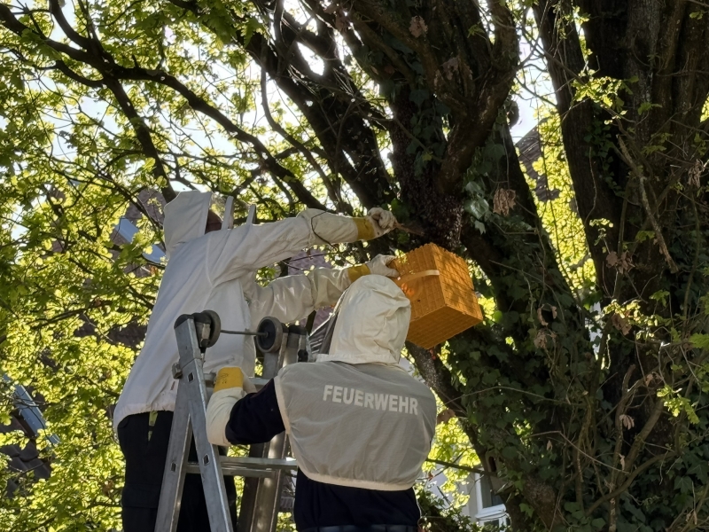 Gemeinsam mit einem hinzugezogenen Imker wurde die Lage vor Ort bewertet. Der Imker übernahm die fachgerechte Umsiedlung des Bienenvolkes, während die Feuerwehr unterstützende Maßnahmen durchführte.