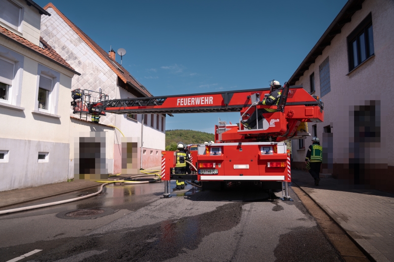 Gemeldet wurde der Brand in der Hangarder Hauptstraße gegen 12 Uhr am Dienstagmittag. Die Neunkircher Feuerwehr rückte daraufhin mit den Löschbezirken Hangard, Münchwies sowie den Hauptamtlichen Kräften aus. Anwohner befürchteten zunächst ein Feuer in der die Lücke zwischen zwei Wohnhäusern ausfüllenden Garage. Doch wie die Feuerwehrleute nach ihrem Eintreffen am Einsatzort feststellen mussten brannte es nicht etwa in der Garage, sondern auf ihrem Dach. Auf dem Dach abgelegtes Holz und andere Gegenstände brannten lichterloh. Mit einem schnellen Löschangriff schlugen die Feuerwehrangehörigen den Brand nieder. Über die auf der Straße in Stellung gebrachte Drehleiter konnten Feuerwehrleute zügig die Brandbekämpfung aufnehmen. Später ergänzte noch eine an die Garage angestellte tragbare Leiter die Drehleiter. Eine Ausbreitung des Feuers auf das eigentliche Garagendach und die Garage sowie auch die Nachbarhäuser konnte die Feuerwehr verhindern. Weil das Feuer deutlich kleiner war, als anfangs befürchtet konnten ergänzende Feuerwehrkräfte aus dem Löschbezirk Wiebelskirchen ihre Einsatzfahrt frühzeitig abbrechen.