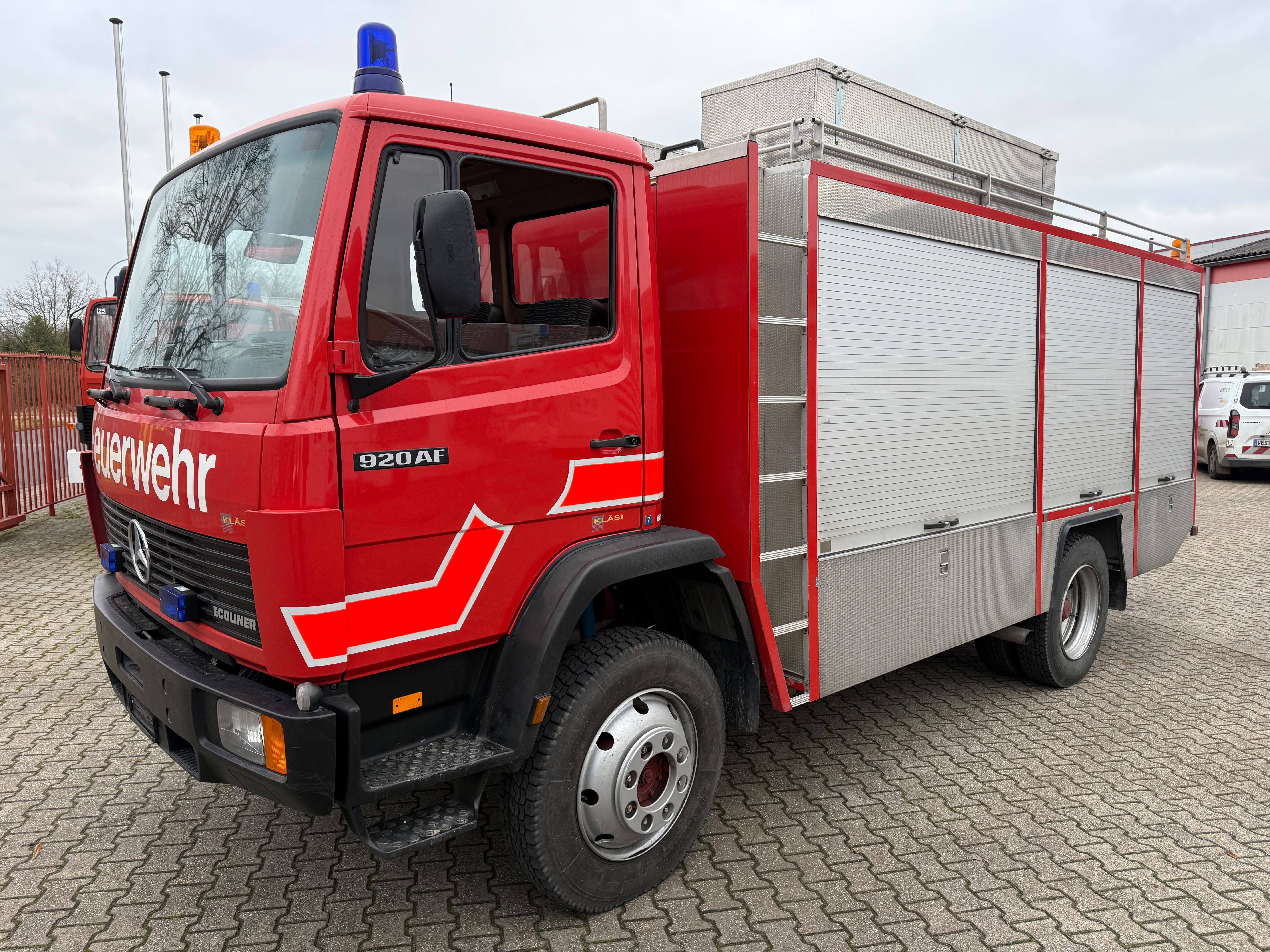 TLF16/15T Mercedes-Benz Ecoliner 920AF Antrieb: 4x4, Schaltgetriebe Diesel-Motor, 200 PS Erstzulassung: 1989 Kilometer: 35.800 1 + 2 Sitze 1500l Wasser Schaumzumischung Normaldruckpumpe aus Bronxe