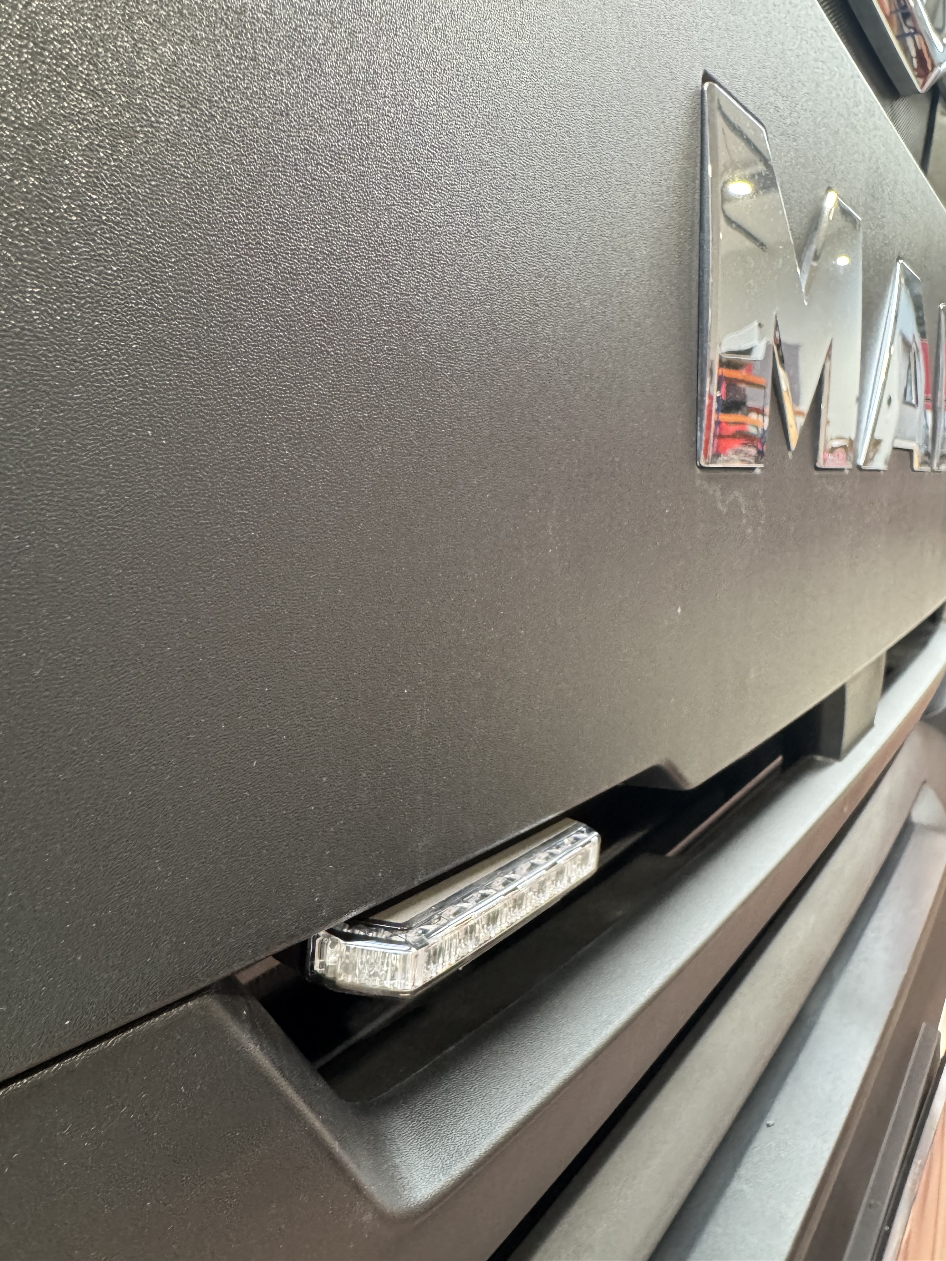 2 Stk. LED Frontblitzer Typ Sputnik Hybrid montiert im Kühlergrill
