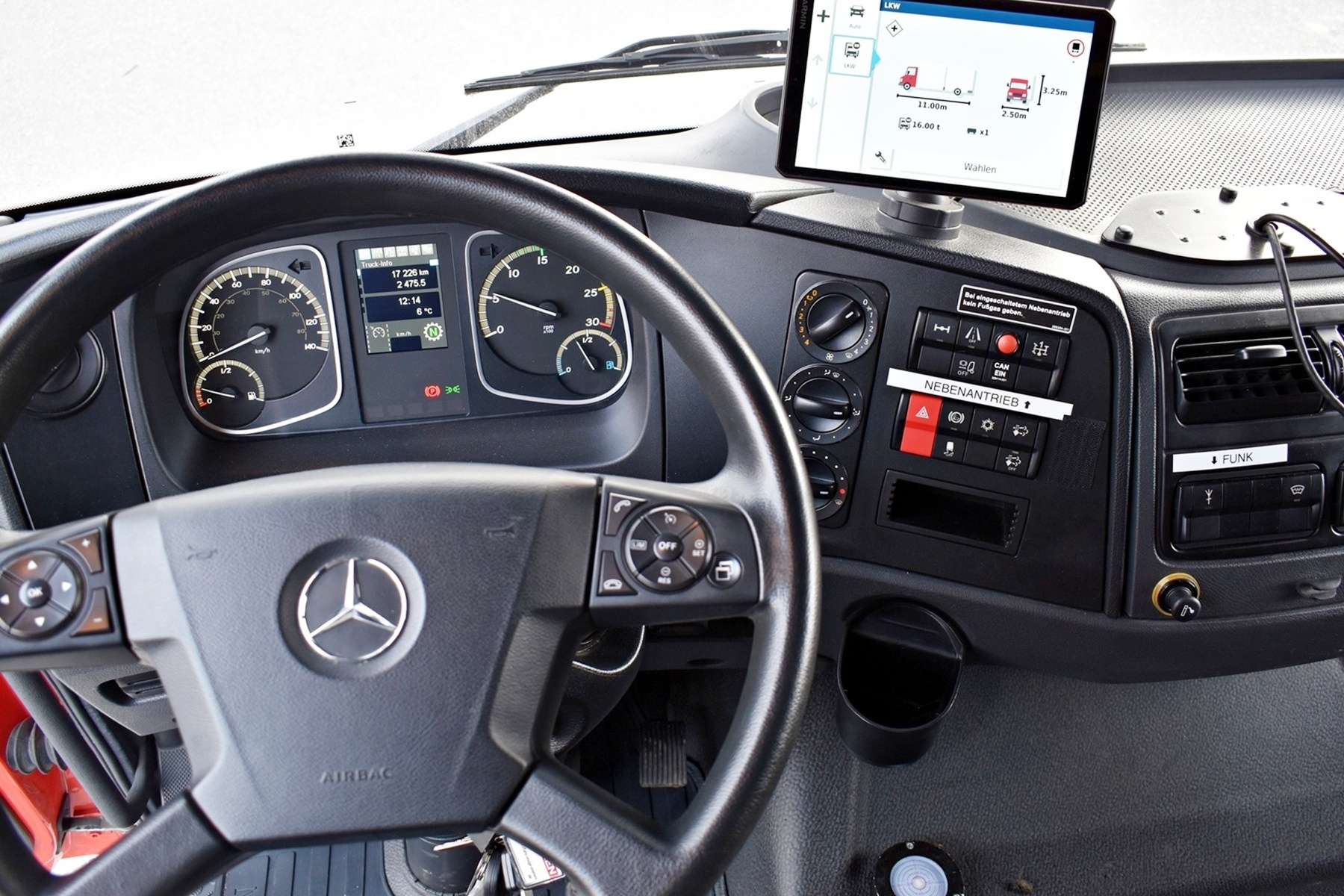 Stützen: einzeln ansteuerbar, stufenlose Waagerecht-Senkrecht-Abstützung, mit Bodendrucküberwachung und Achsverriegelung