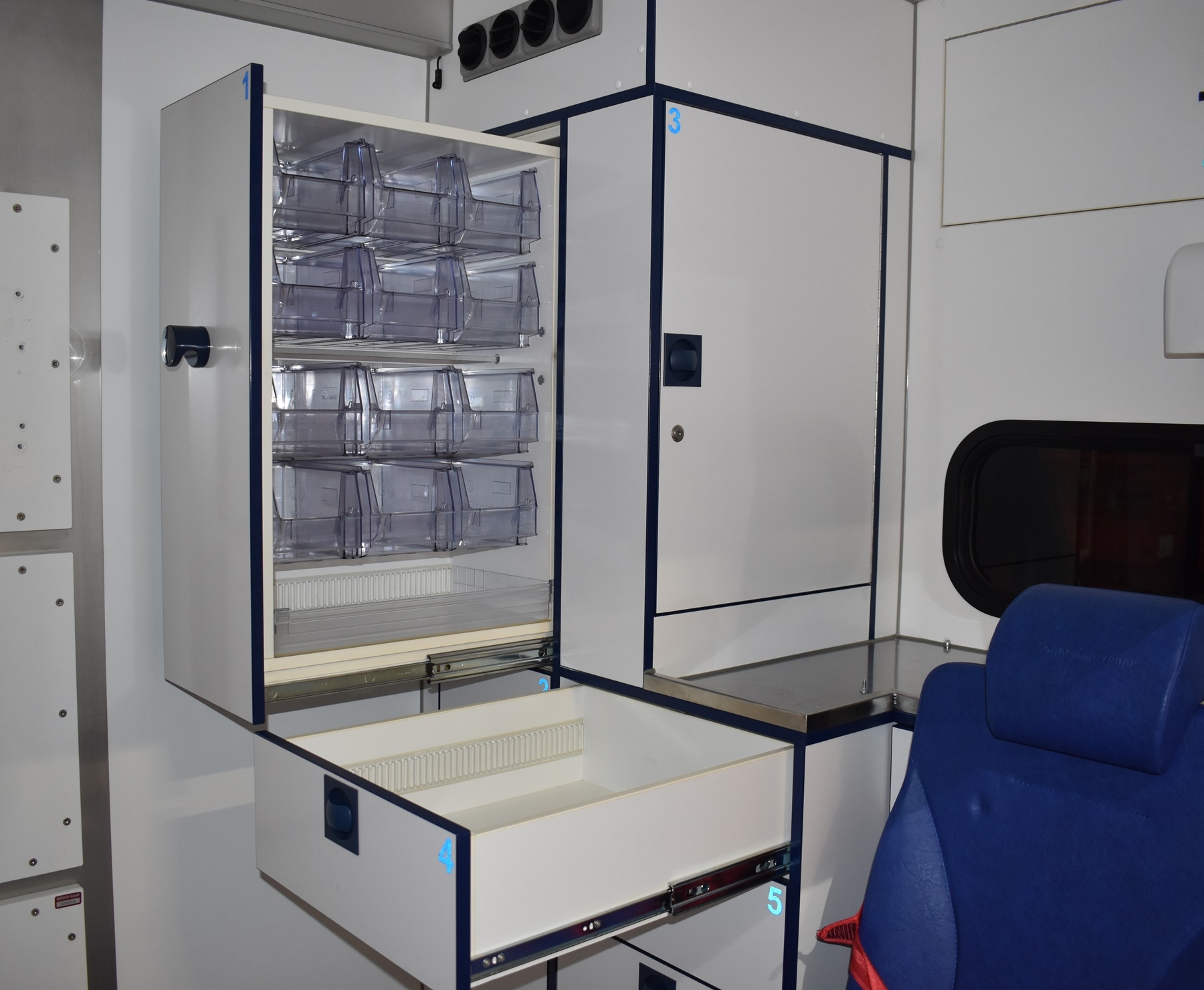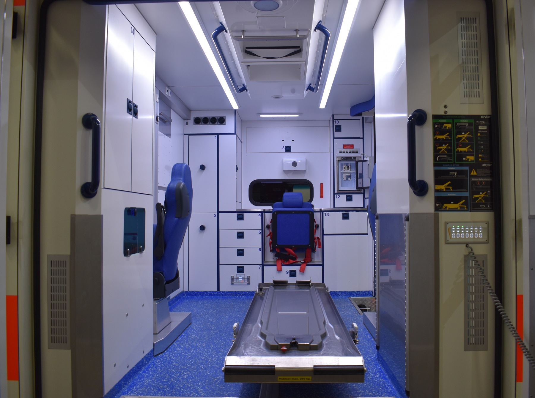 Tagfahrlicht, Klimaautomatik, Sitzplätze: 2 vorne / 3 hinten, klappbarer Arbeitstisch, umschaltbares blaues Traumalicht, Airbag, Elektrische Fensterheber und Seitenspiegel, Zentralverriegelung, Standheizung, ABS, ESP, CD-Radio, Servolenkung, Nebelscheinwerfer |