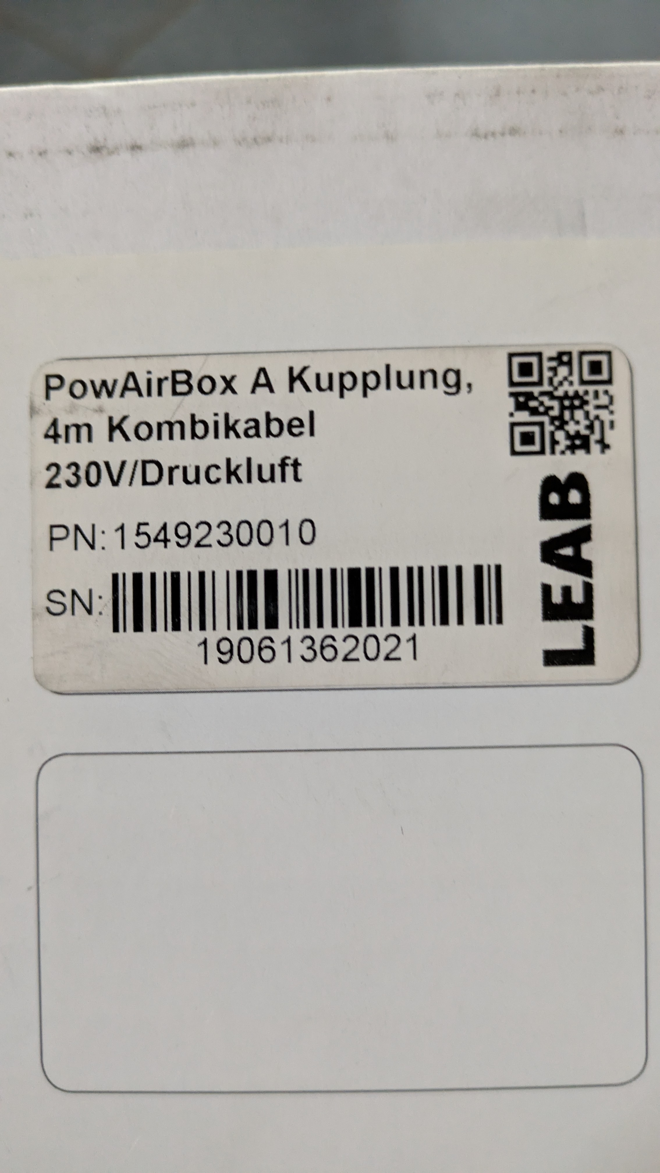 Hallo, wir beiten hier eine neue, unbenutzte Anschlussleitung für eine PowAirBox Typ A der Firma Leab an. -Komplett bestückte, vorkonfektionierte Kupplungsdose, für 230-V-Strom- und Druckluftversorgung -4 Meter Leitunslänge -anderes Kabelende unkonfektioniert Bei Fragen gerne melden. Preis: 150.00 Euro VHB 18.02.2026 Anzeige-Nr.: 100331 | ||