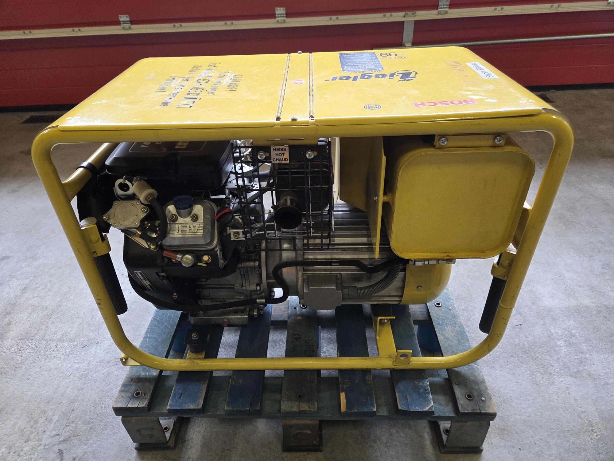 Die Feuerwehr Bickenbach verkauft einen Stromerzeuger BOSCH BSKA 8. Typ: BOSCH BSKA 8 nach DIN Baujahr: 1994 Betriebsstunden: 127 h Nennleistung: 8 kVA Abgänge: 3 x 230V / 1 x 400V Briggs & Stratton Motor Gewicht: 128 kg Das Gerät befindet sich in einem einsatzbereiten und sehr guten Zustand. Besichtigungen sind nach Vereinbarung möglich und ausdrücklich gewünscht. Gebote sind mit der Funktion „Nachricht an den Anbieter“ bis zum 22.03.2026 möglich. Das Mindestgebot beträgt € 1.000. Kein Versand, nur Abholung. Preis: 1000.00 Euro Mindestgebot 23.02.2026 Anzeige-Nr.: 100374 | ||