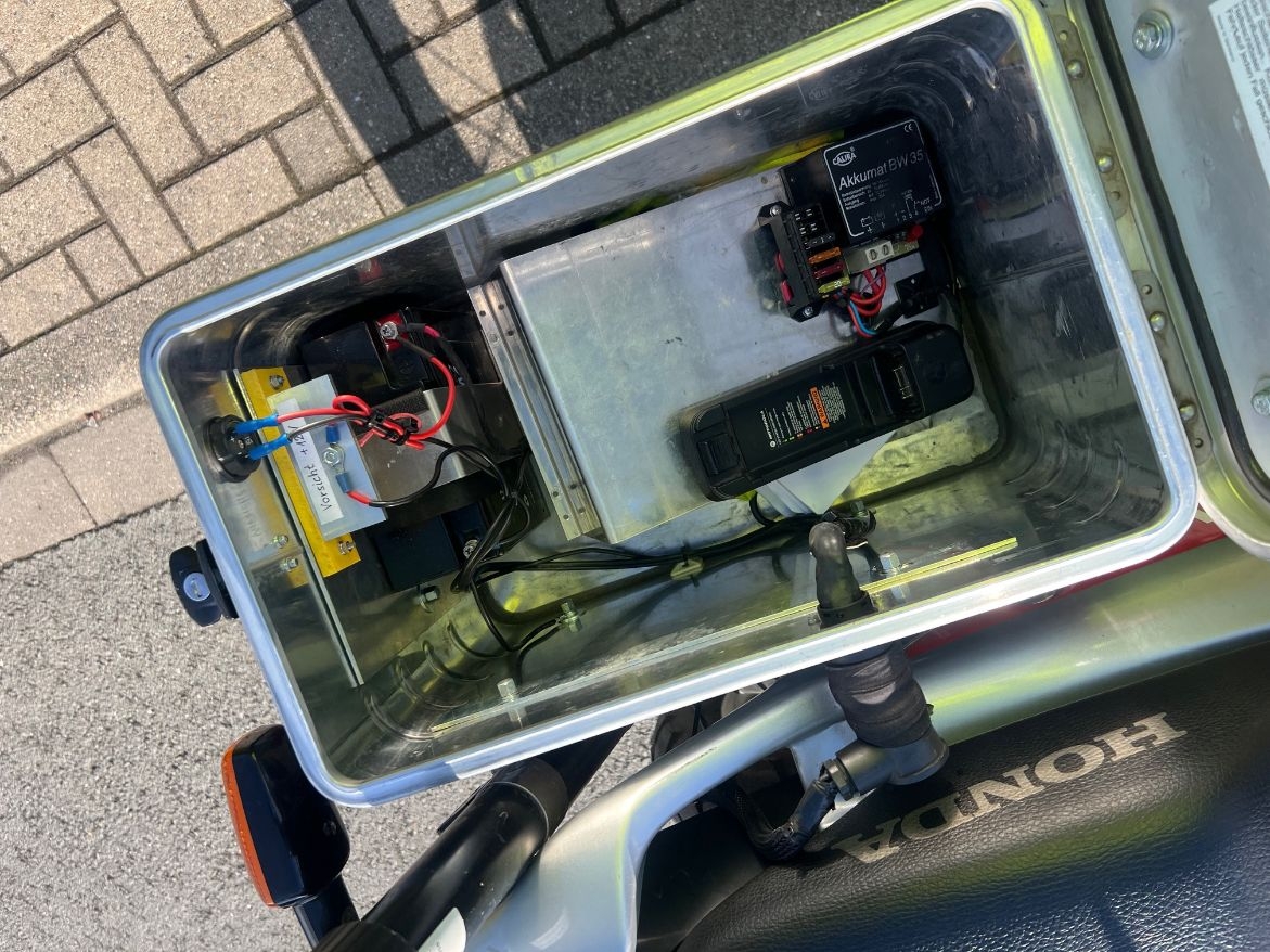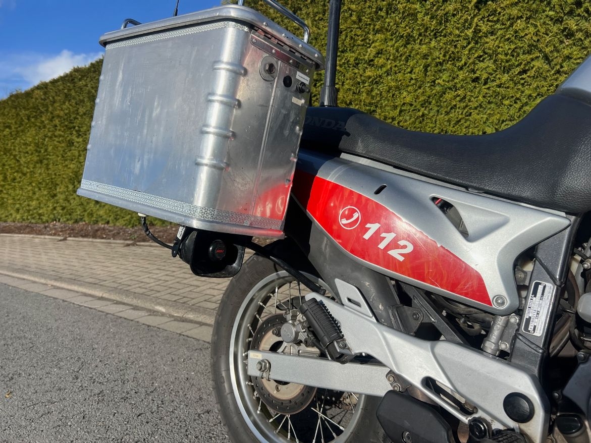 Zum Verkauf kommt ein sehr gut erhaltenes Feuerwehr Motorrad aus 1. Hand direkt für Feuerwehr so aufgebaut worden. Honda Montesa ( Trans Alp) 650 ccm , 53 PS , mit original 12300 km, Ausstattung : Funkvorbereitung ,es war schon ein Digital Funk verbaut,die Technik ist in den Seitenkoffern verbaut , die Bedienung am Lenker . Frontblitzer , 3 RKL aus Auszugstab ,elektrisches Signalhorn. Die Sondersignaleinrichtungen sind eingetragen 31.03.2026 Anzeige-Nr.: 100803 | |||