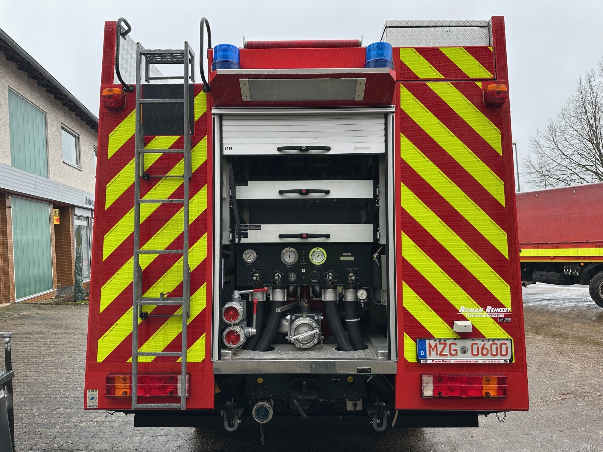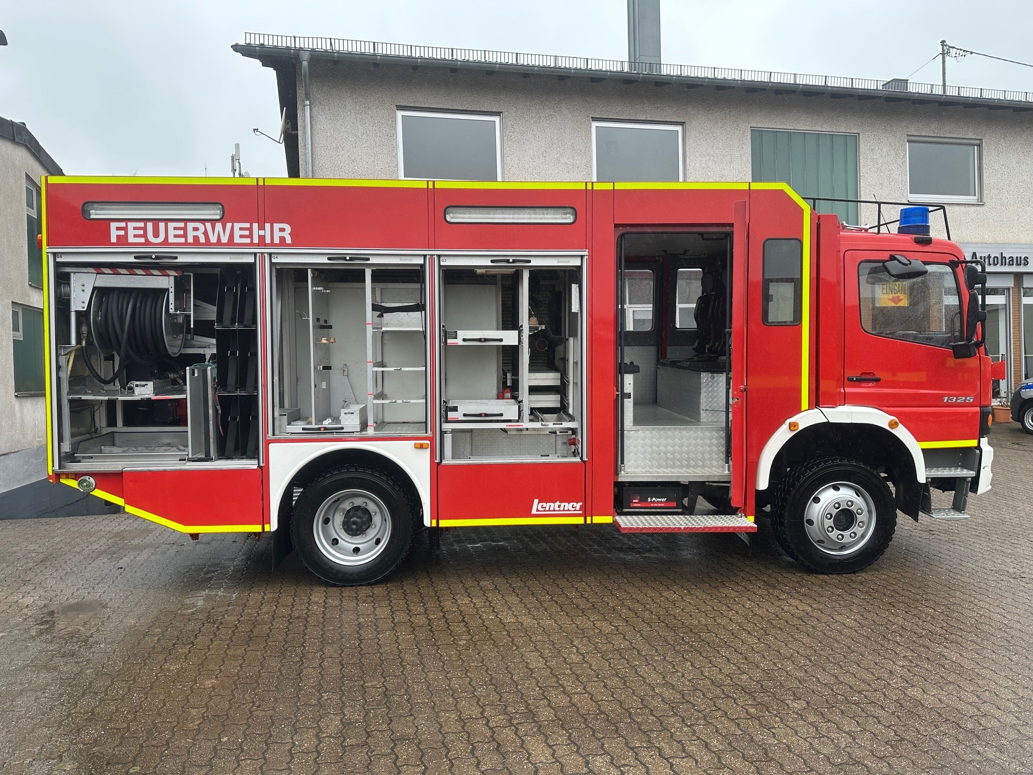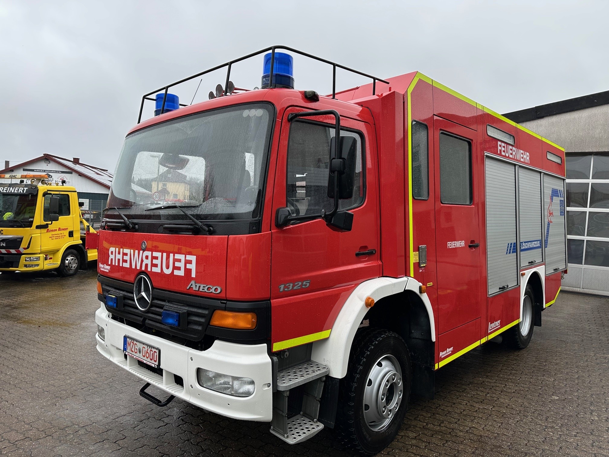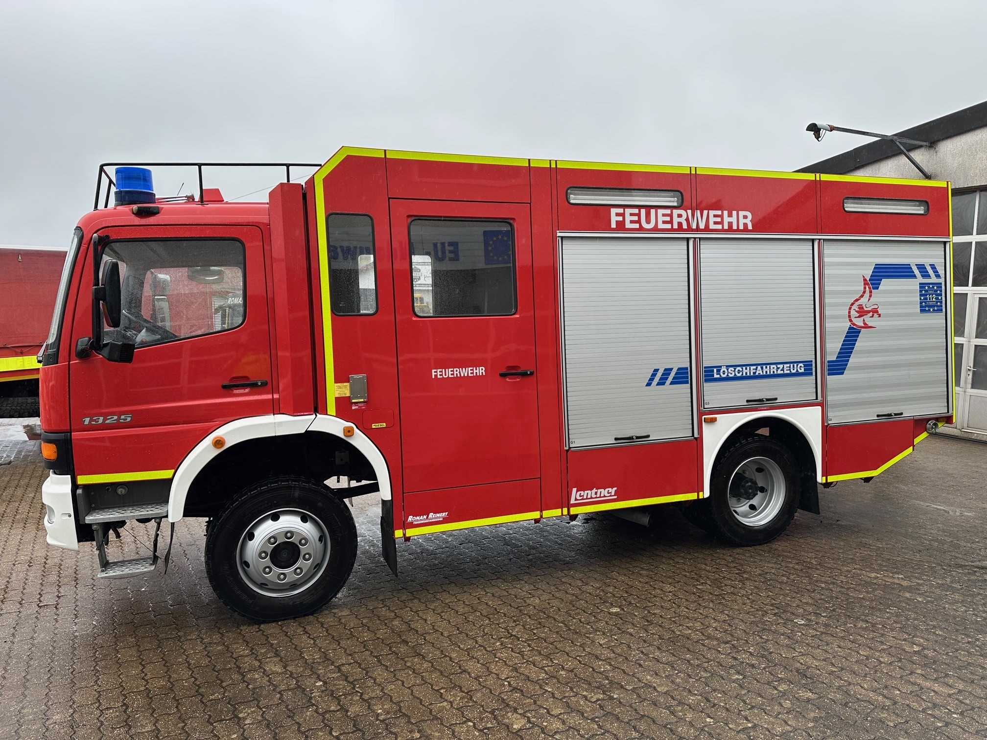 Lentner TLF 16/25 mit Integralkabine ! Daimler Chrysler, Atego 1325 AF nur 15.000 km 6 Gang Schaltgetriebe zulässiges Gesamtgewicht: 13.000 kg Aufbau: Lentner Pumpe: Hale Godiva, FP 16/8 Löschwassertank: 2400l Farbe: RAL 3000 Feuerrot Diesel, 180 KW / 245 PS Allradantrieb Differentialsperren Mitte und hinten, Standheizung Unfalldatenschreiber UDS Pneumatischer Lichtmast mit 4 Scheinwerfern á 1000W / 230 V Staffelkabine 1/5 (6 Personen) HU / SP bis 08/2026 Laufleistung: 15.739 km Reifen DOT 2918 Reifengröße: 255/70R22,5 06.04.2026 Anzeige-Nr.: 100864 | |||