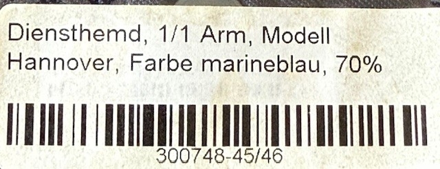 | Biete: Feuerwehr - Diensthemd Modell Hannover, Langarm in Größe 45/46 | ||