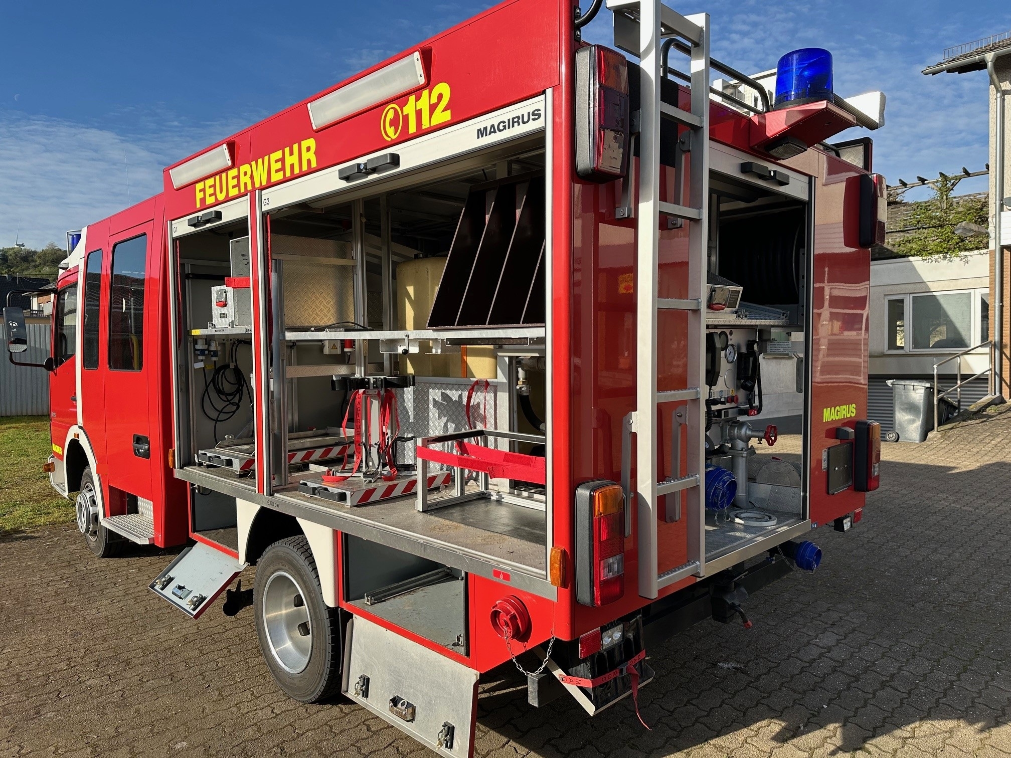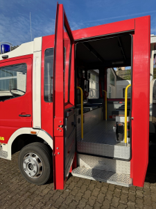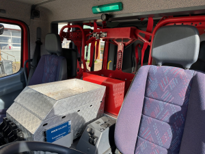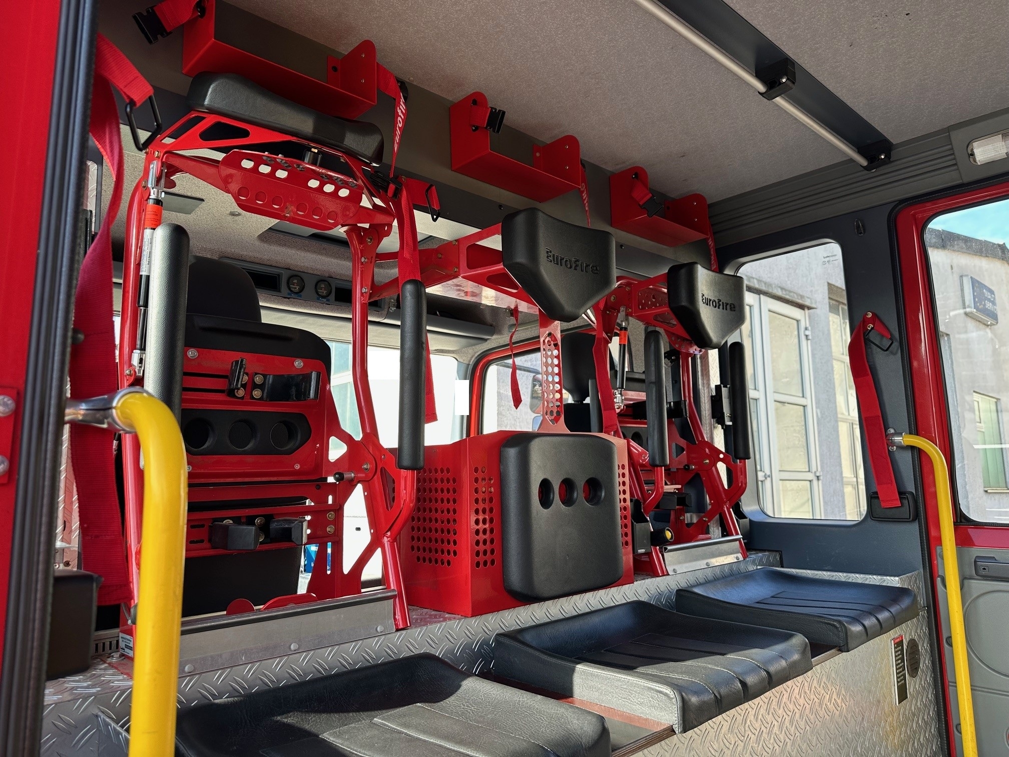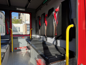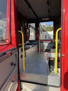 In der modernen Mannschaftskabine sind 2 Atemschutzhalterungen gegen Fahrtrichtung montiert,