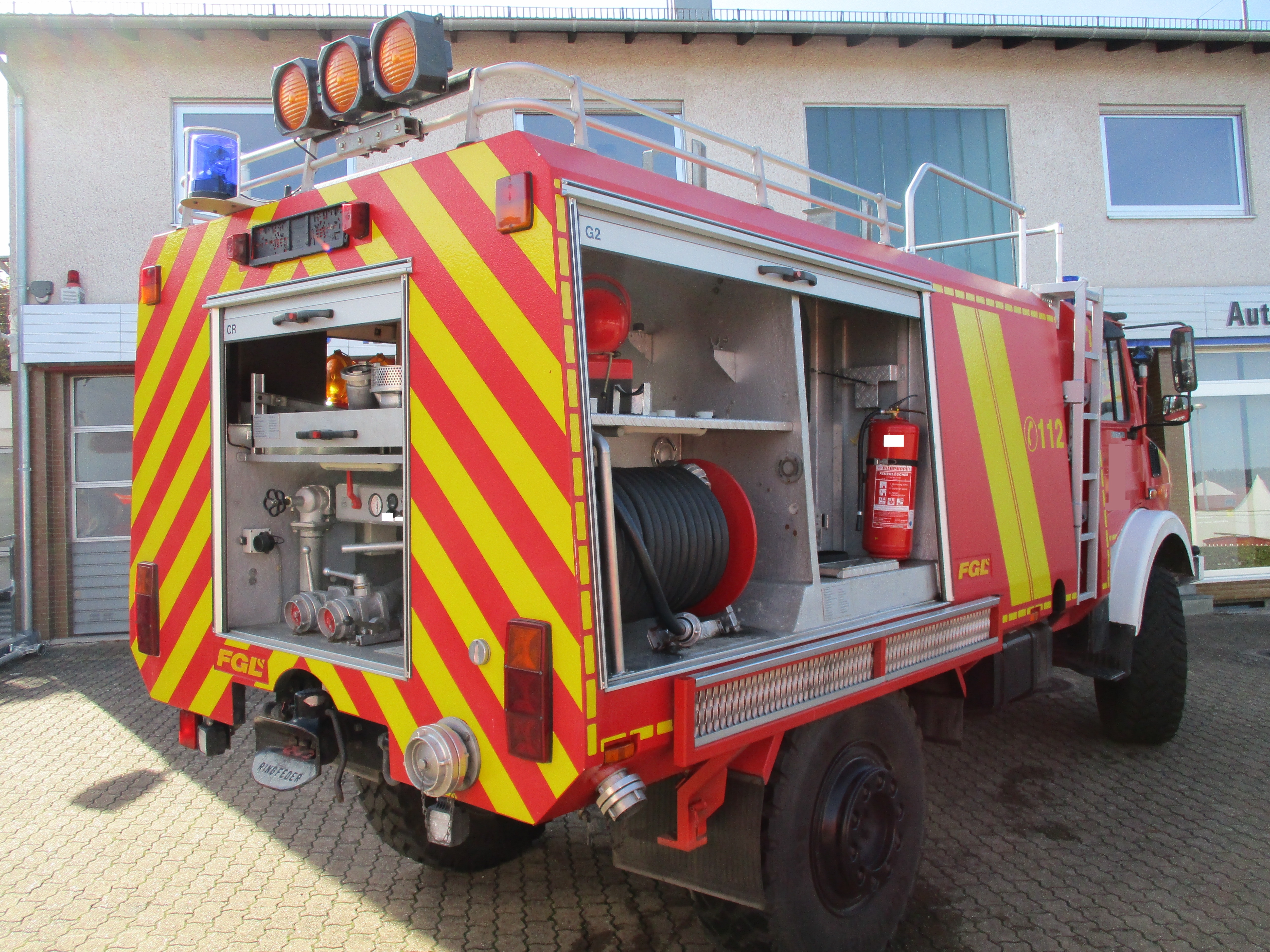 Waldbrand TLF 16/45 UNIMOG Fahrzeugdaten: Hersteller Fahrgestell: Mercedes Benz Typ und Ausführung: Unimog 437/40 Hersteller Aufbau: Feuerwehr Gerätewerk Luckenwalde Hubraum: 5958 cm³ Leistung: 157 kW Leergewicht: 7100 kg zul. Gesamtgewicht: 12.500 kg Fahrzeuglänge: 6500 mm Fahrzeugbreite: 2500 mm Fahrzeughöhe: 3050 mm nächste fällige HU: Neu nächste fällige SP: Neu Zwischenverkauf, irrtümliche Angaben, alle Rechte vorbehalten. Preis auf schriftliche Anfrage unter vollständiger Angabe der Organisation. 18.04.2026 Anzeige-Nr.: 100971 | |||