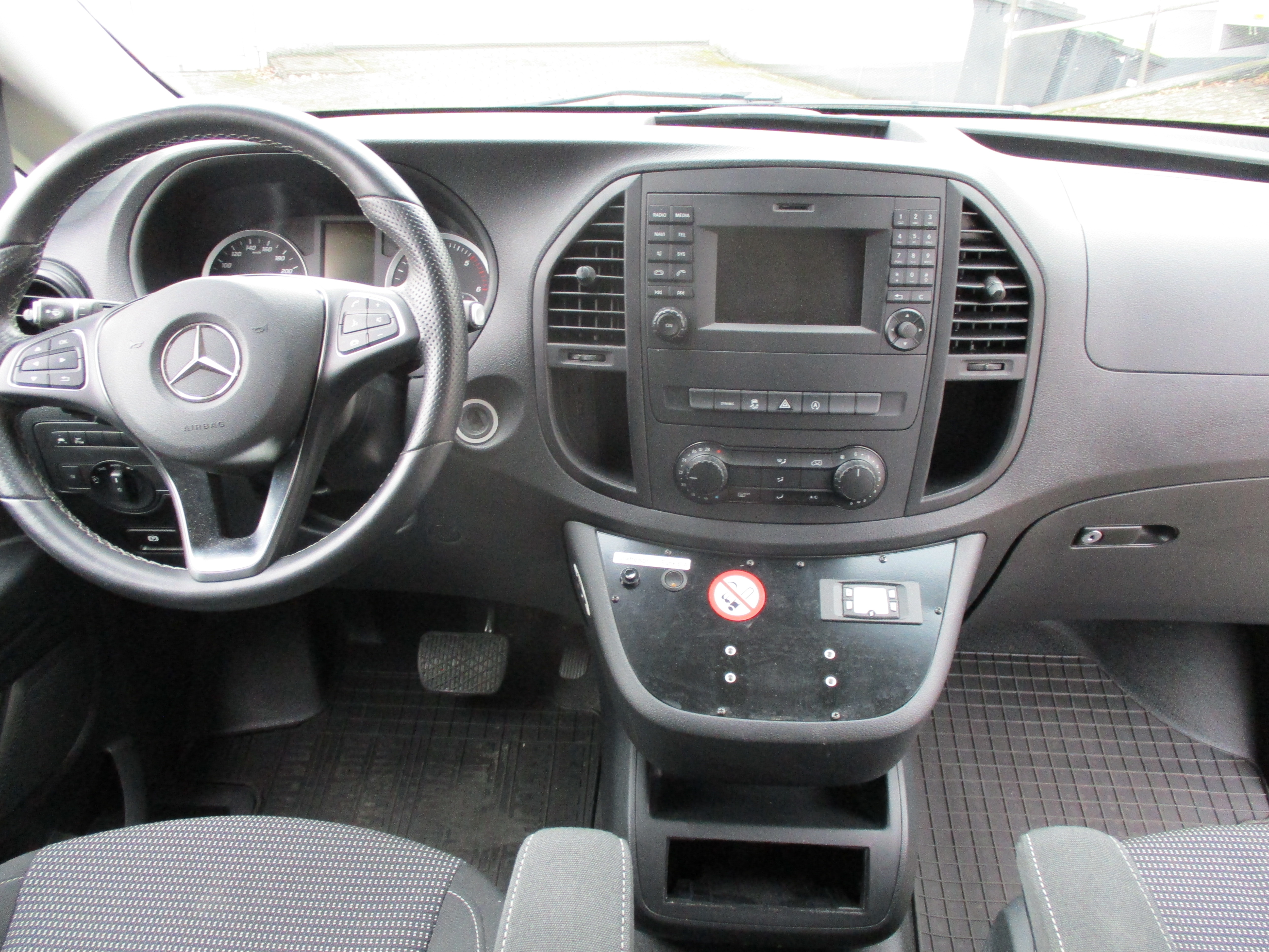3. Bremsleuchte, Adaptives Bremslicht, Airbag Beifahrerseite, Airbag Fahrerseite, Anfahrhilfe (Berganfahr-Assistent), Anzeige für Waschwasserstand, Auflastung auf 3,1 t, Außenspiegel asphärisch, beide, Außenspiegel elektr. verstell- und heizbar, beide, Außentemperaturanzeige, Befestigungsschienen für Dachträger, BlueEfficiency-Paket, Bodenbelag: Fahrgastraum TPO, Bremssystem mit ABS+ASR, Dachverkleidung, Design- und Ausstattungslinie PRO, Einschaltautomatik für Fahrlicht, Einstiegsgriff hinten, Fahrassistenz-System: Anfahr-Assistent (Berganfahr-Assistent), Fahrassistenz-System: Attention-Assist (Müdigkeitserkennungs-Sensor), Fahrassistenz-System: Pannenmanagement, Fahrassistenz-System: Seitenwind-Assistent, Fenster für hintere Türen / Heckklappe mit Wisch-/Waschanlage, Frontscheibe mit Scheibenantenne, Generator 150 A, Getriebe Automatik GTronic - (9-Stufen), Getränkehalter vorn, Gurtstraffer, Haltegriffe im Fond, Handschuhfach abschließbar, Harnstofftank (AdBlue): 24 Ltr., Heckklappe mit Verglasung, Heckscheibe heizbar, Heckscheibenwischer, Innenverkleidung gehobene Ausführung, Karosserie/Aufbau: extra lang, Karosserie/Aufbau: Kombi Standard, Kindersicherung, Kommunikationsmodul (LTE) für digitale Dienste, Kopf-Airbag-System (Windowbag), Kopf-Schulter-Airbag (Thoraxbag) Fahrer-/Beifahrerseite, Lenkrad (Lenksäule mech. verstellbar), Mercedes-Benz Notrufsystem, Modellpflege, Motor 2,0 Ltr. - 120 kW CDI KAT, Nebelschlussleuchte, PKW-Zulassung, Pro, PTC Heater, Radstand 3430 mm, Reifen 205/65 R16C 103/101 T, Reifendruck-Kontrollsystem, Rückspiegel innen, Schadstoffarm nach Abgasnorm Euro 6d-TEMP, Scheibenwischer mit Regensensor, Schiebetür Lade-/Fahrgastraum rechts mit Verglasung, SCR-System (AdBlue-Technologie), Sicherheitsgurt-System mit Warnanlage (Fahrer-/Beifahrerseite), Sitzbezug / Polsterung: Stoff Caluma, Sitze im Lade-/FG-Raum: 1.Reihe, 3er-Sitzbank, Klappsitz außen, Stahlfelgen 6,5x16, Vlies-Batterie 92 Ah, Warmluftkanal zum Lade-/Fahrgastraum, Wartungsintervall-Anzeige Assyst, Wärmeschutzverglasung